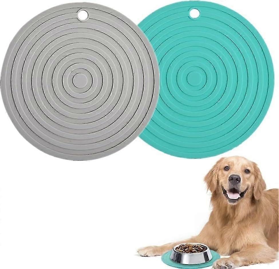 2 Pack Silicone Pet Food Mats Waterproof Bowl Mats Non-slip for Small and Medium Pets, Gray, Green