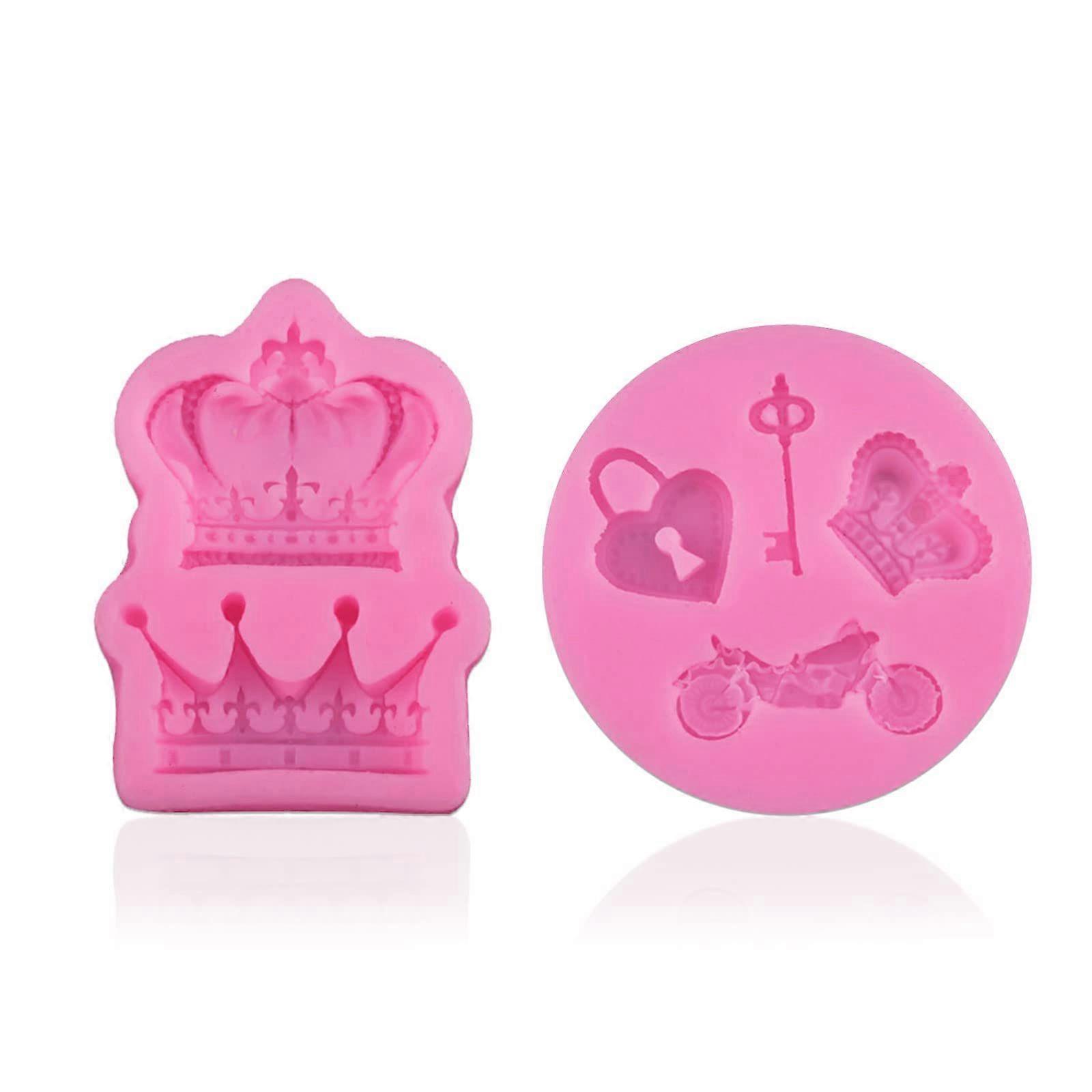 2 Pack Silicone Molds, DIY Crown Decoration, Chocolate Baking Molds, Decorating Molds for Chocolate, Cake, Fondant Cake (Pink)