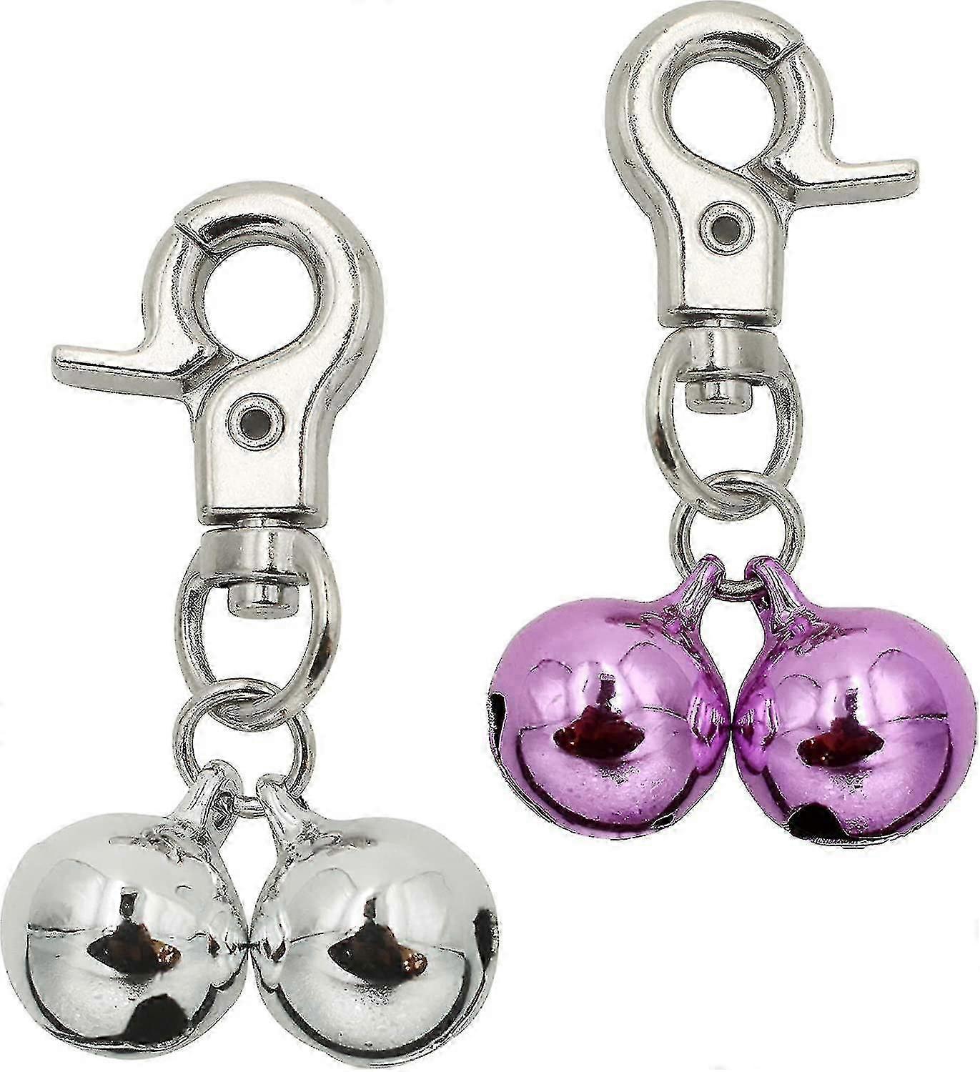 2 Pack Stainless Steel Bell Necklace - Pet Accessories Training Collar Charm , Silver+pink