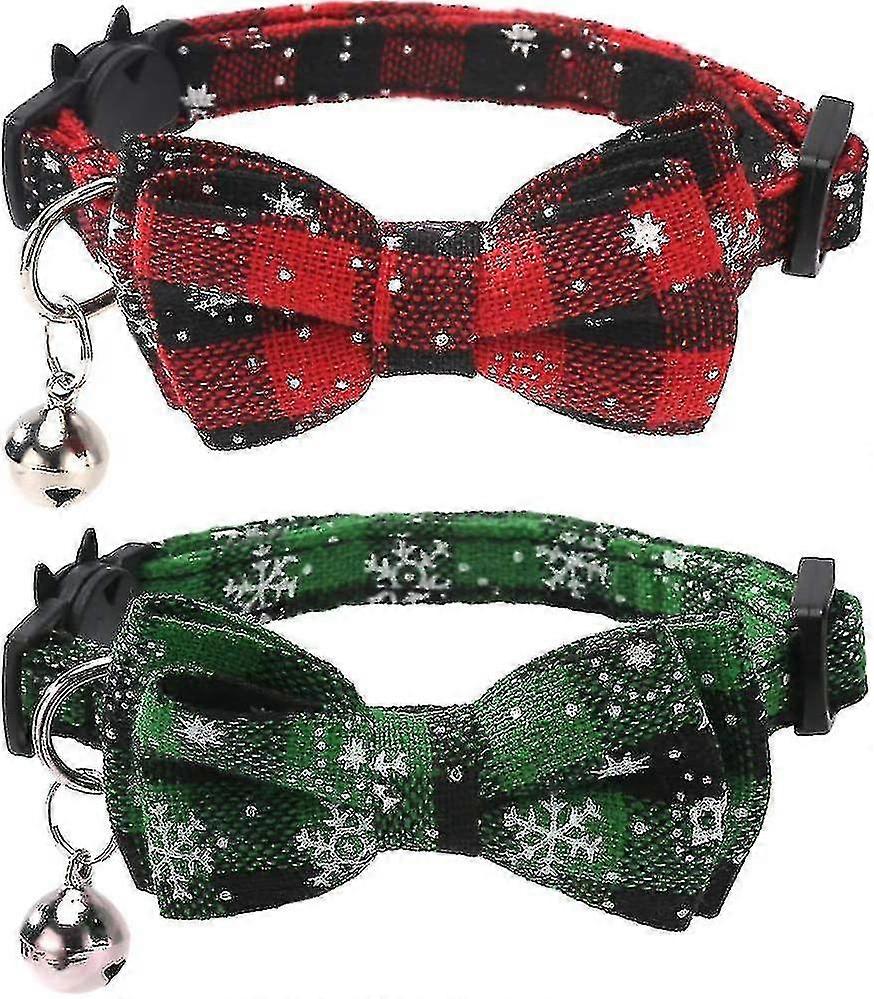 2 Pack/set Christmas Cat Collar Breakaway With Cute Bow Tie And Bell For Kitty Adjustable Safety P H