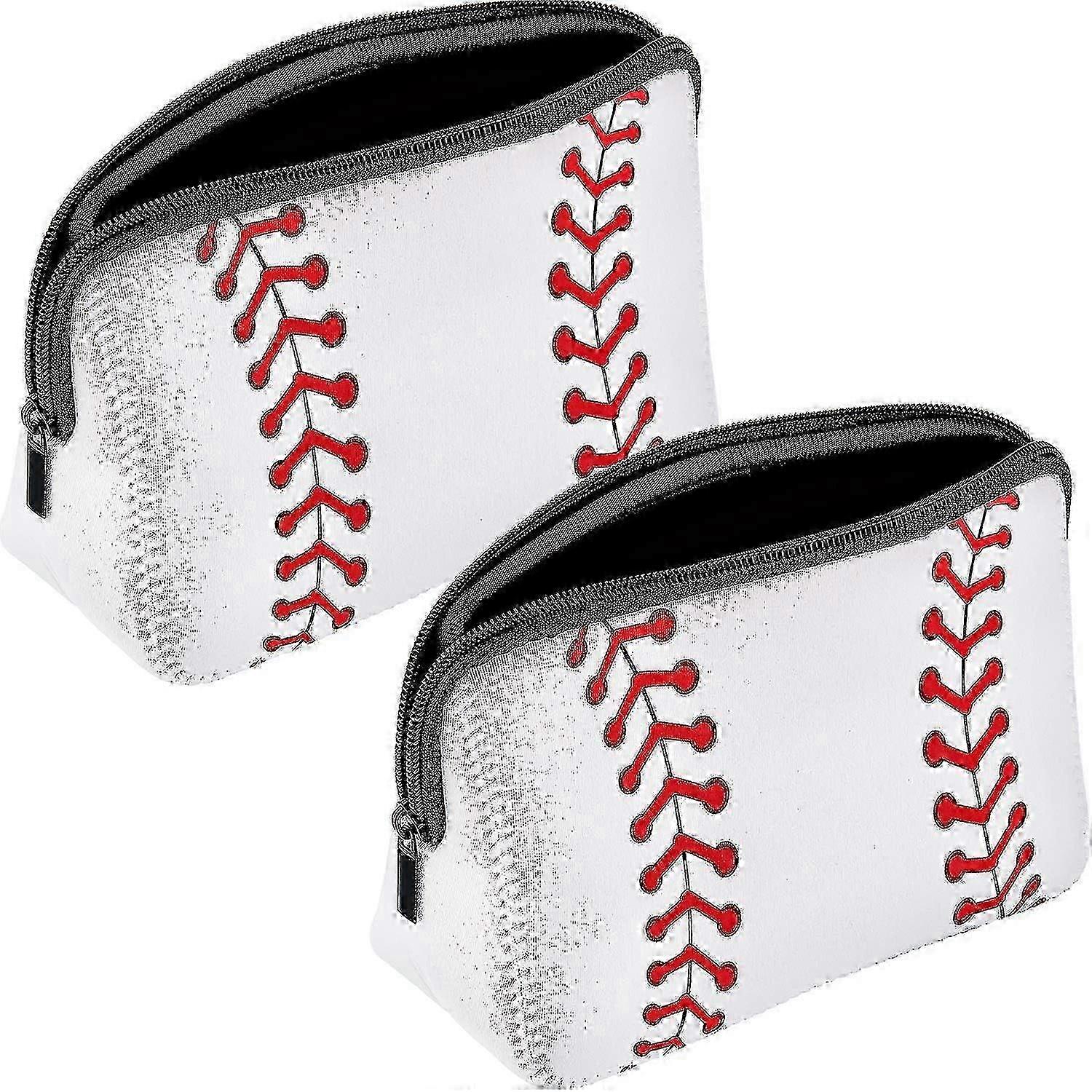2-Pack Softball Print Makeup Bags - Waterproof Neoprene Cosmetic Pouch with Zipper (White, 10.24x5.12x3.7 Inch)