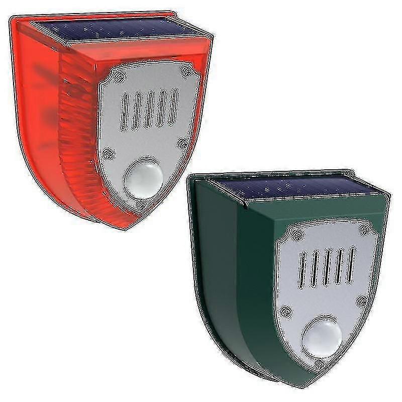 Solar Alarm Strobe LightThe solar sound alarm siren strobe light makes gunshot sounds & dog barking have 3 Work modes optional you can choose:24 hours with flash and alarm, Sound and flash alarming at night, Night cyclic flash & dog and gun sound every 5 minutes (without sensing function)