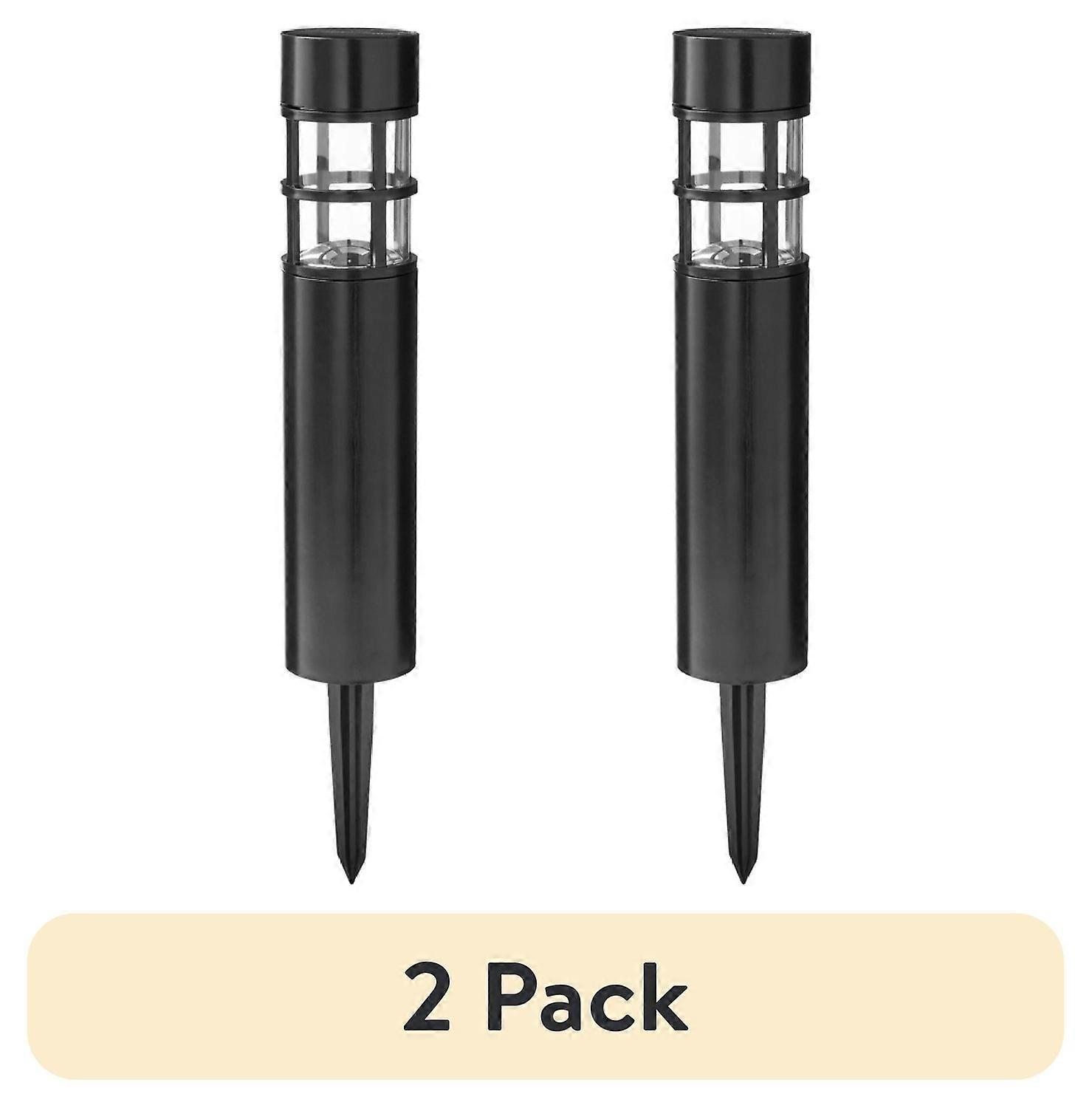 (2 Pack) Solar Powered Black Bollard Landscape Path Light, 10 Lumens