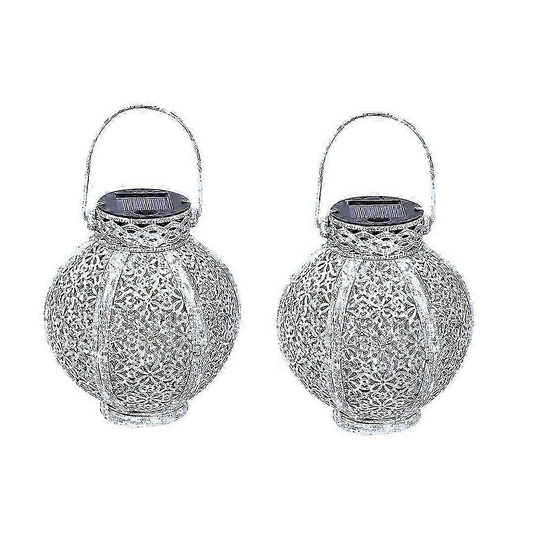 2 Pack Solar Lanterns Outdoor Hanging, Retro Large Solar Lantern Lamps Outdoor Waterproof with Handle, Metal DecorativeWhite SZRH A-S