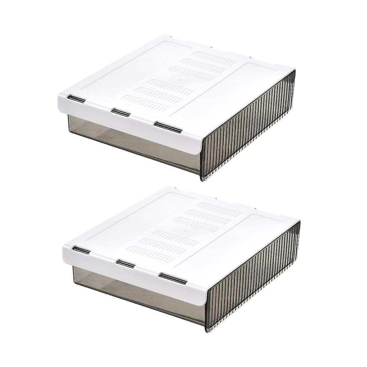Drawers with push-pull function are installed under your desk and have a capacity to take out items stored on your desk. The under table drawer box is a better solution for a tidy desk without taking up space. [Self-adhesive drawer ]24x21.7x6.5CM.The Under Desk Drawer Organizer is easy to install with three strong self-adhesive tapes. It is more stable and aesthetic than conventional drawer boxes and is easy to use for storage. [Multi-Scene Use]The maximum weight capacity of the table floor is 5kg.The drawer cabinet can be installed in offices, apartments and schools to hold many small items. It can be used to store a of items and protect your personal property. [Instructions for Use]The lower desk drawer comes with three pieces of strong double-sided tape, you just need to clean the bottom of the desk, then glue the double-sided tape to the top of the organizer, and finally attach the organizer where you need it. Please wait 24 hours before using before you hand in your items. [Quality material]Made of lead-free ABS plastic, it has good wear resistance and is strong enough for daily use. The edges are and do not cut into the hands. Good for health and safety. Material: plastic colour: black Package Contents: 2 x Desk organizer Only the above package content, other products are not included. Note: Light reflection and different displays may cause the color of the item in the picture a little different from the real thing. The measurement allowed error is +/- 1-3cm.