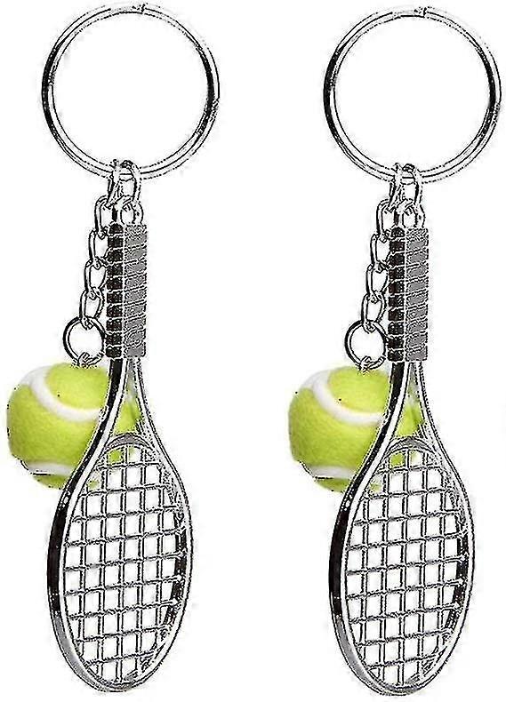 2 Pack Tennis Racket Keychain, Creative Metal Keychain Sport Keyring Tennis Ball Keyring