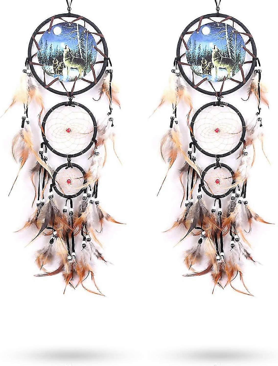 2 Pack Dream Catcher Handmade Dream Catcher With Net And Feathers Wall Hanging Wolf Decor Christmas Wedding Party