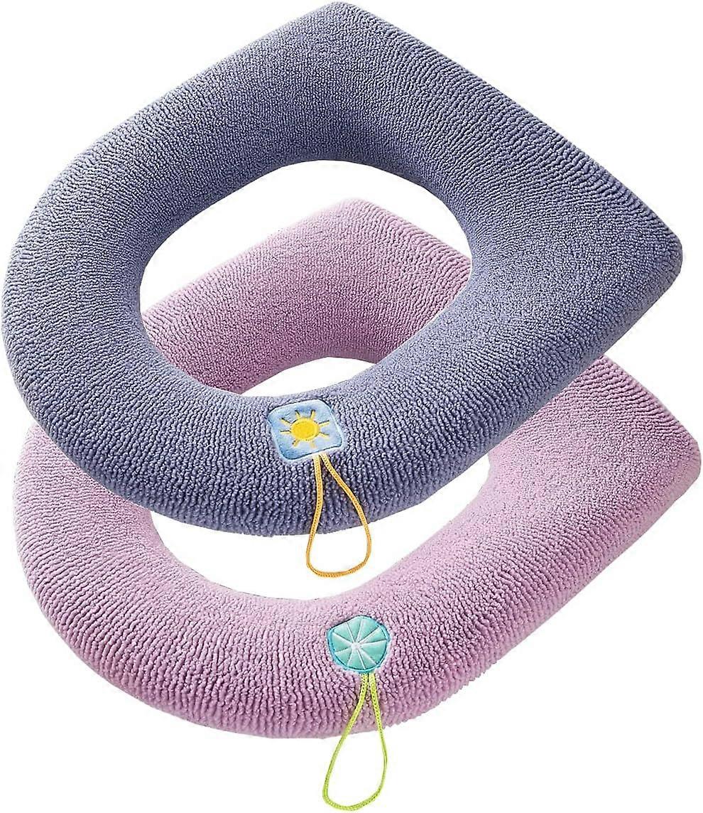 2Pack Purple and Deep Blue Warm Toilet Seat Cover Pads for Bathroom Soft Thick Toilet Seat Cusions with Handle Washable Household Toilet Cover Winter