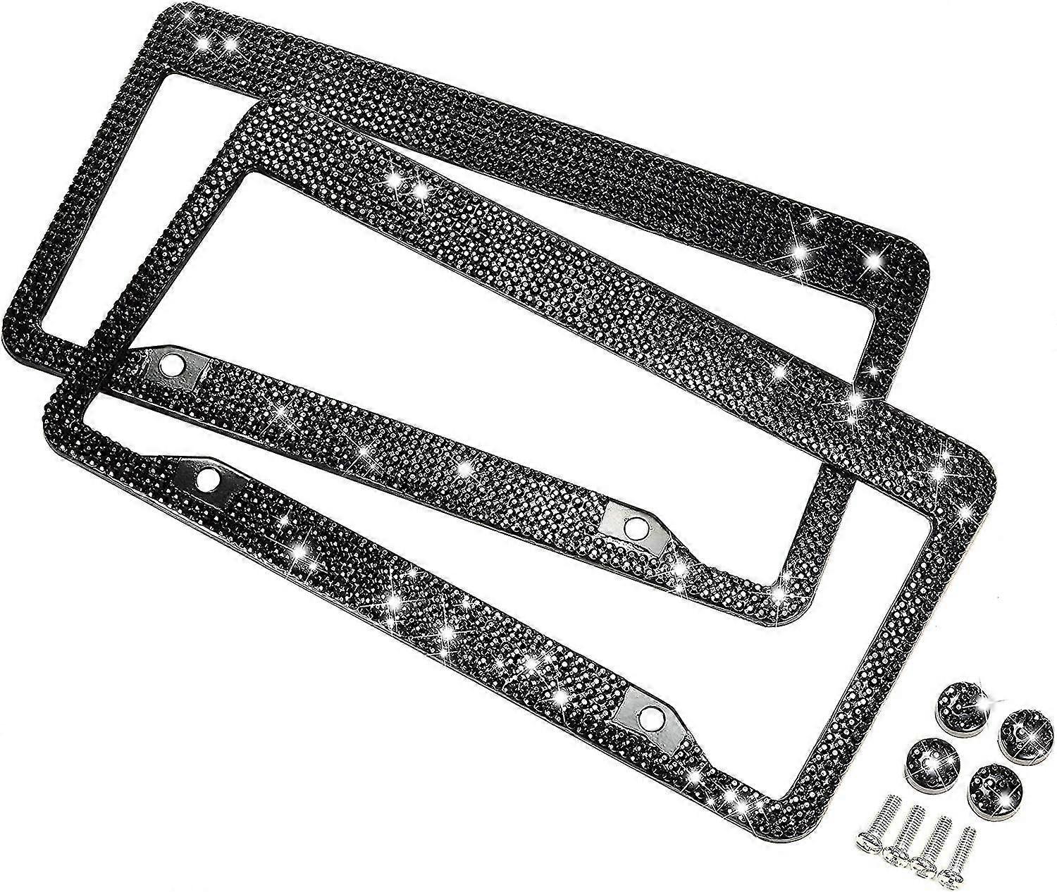 2 Pack Black Crystal Premium Stainless Steel Bling License Plate Frame