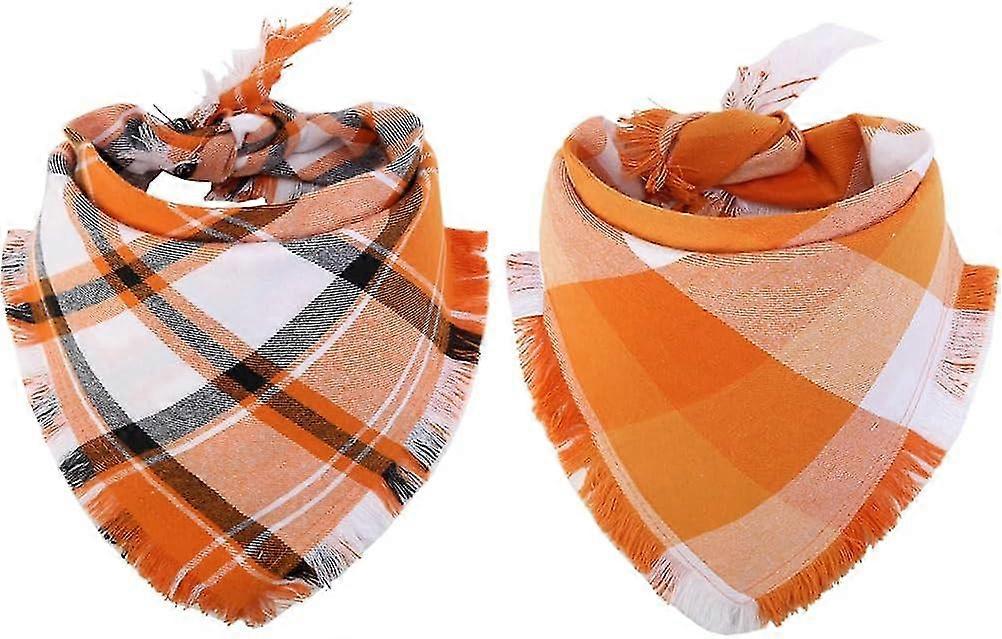 2 Pack Fall Dog Bandanas Thanksgiving Autumn Dog Bandana Orange Plaid Pet Reversible Triangle Bibs S