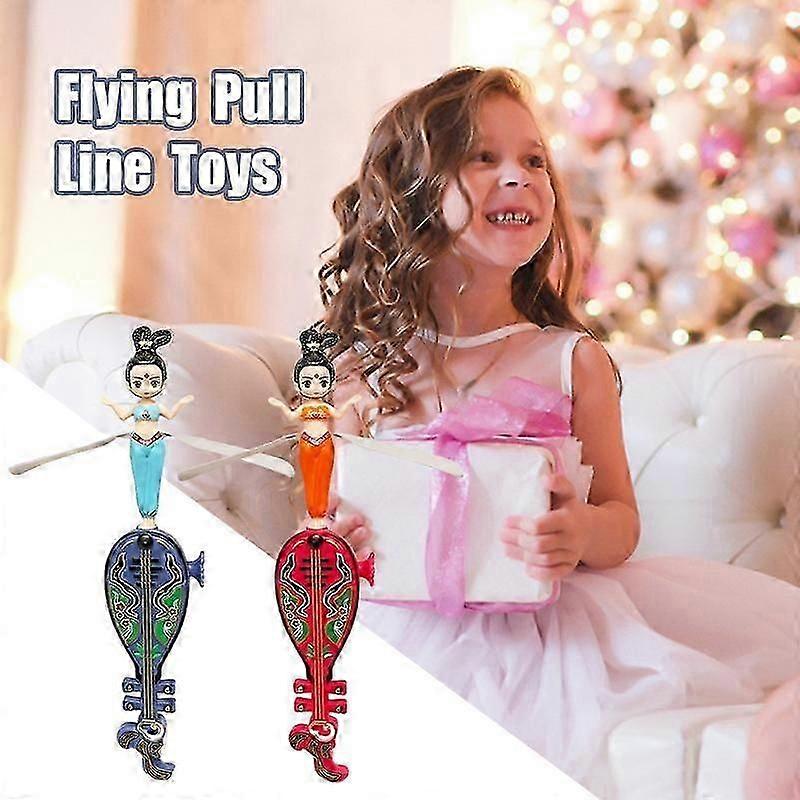 2 Pack Flying Saucer Toys - Fairy Flying Disc Spinning Pull String Toy for Kids Birthday Gifts