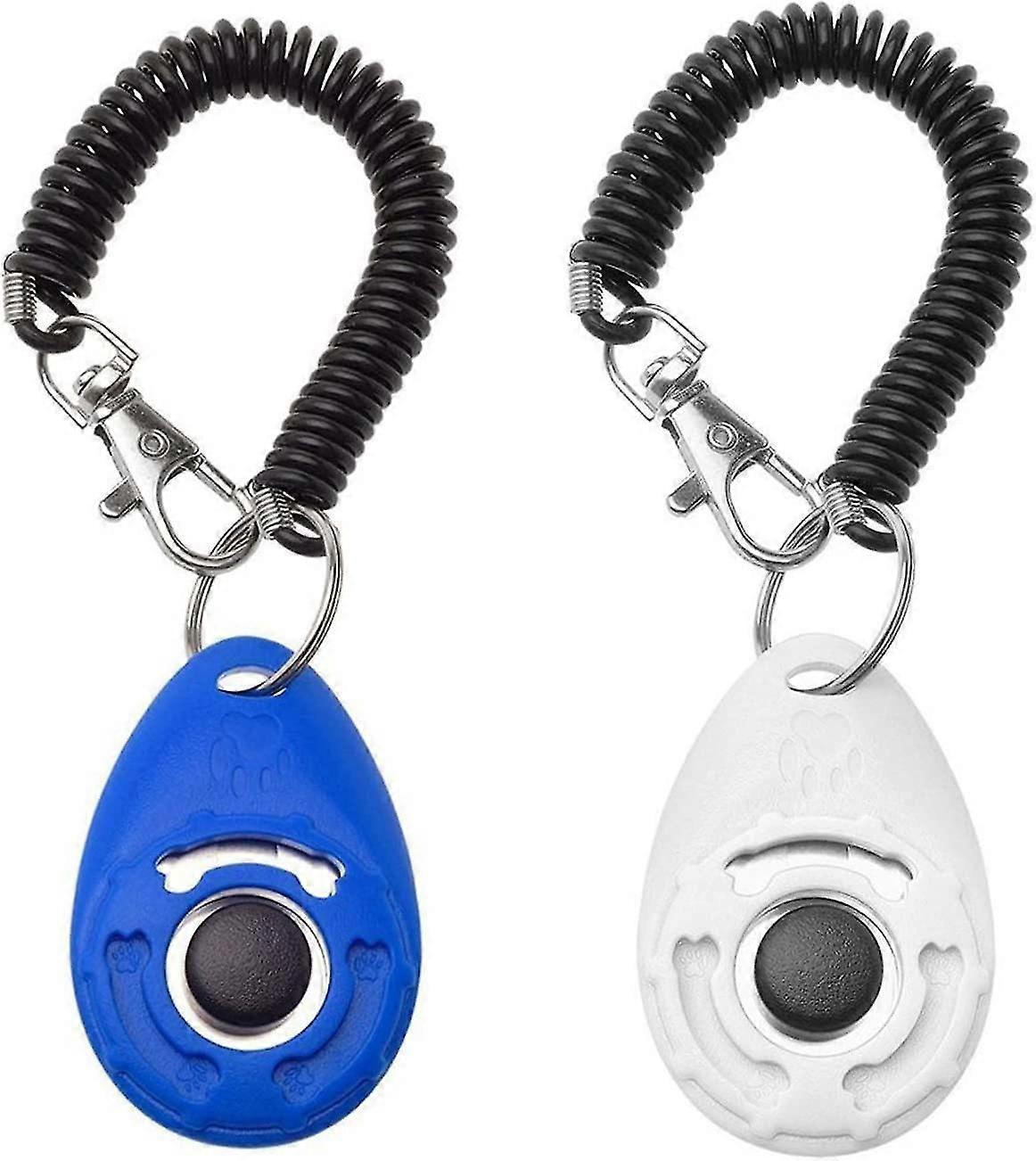 2pack Pet Dog Training Clicker With Wrist Strap - Durable Lightweight Easy To Use Pet Clickers compatible Cats Puppy Birds Horses (blue + White)