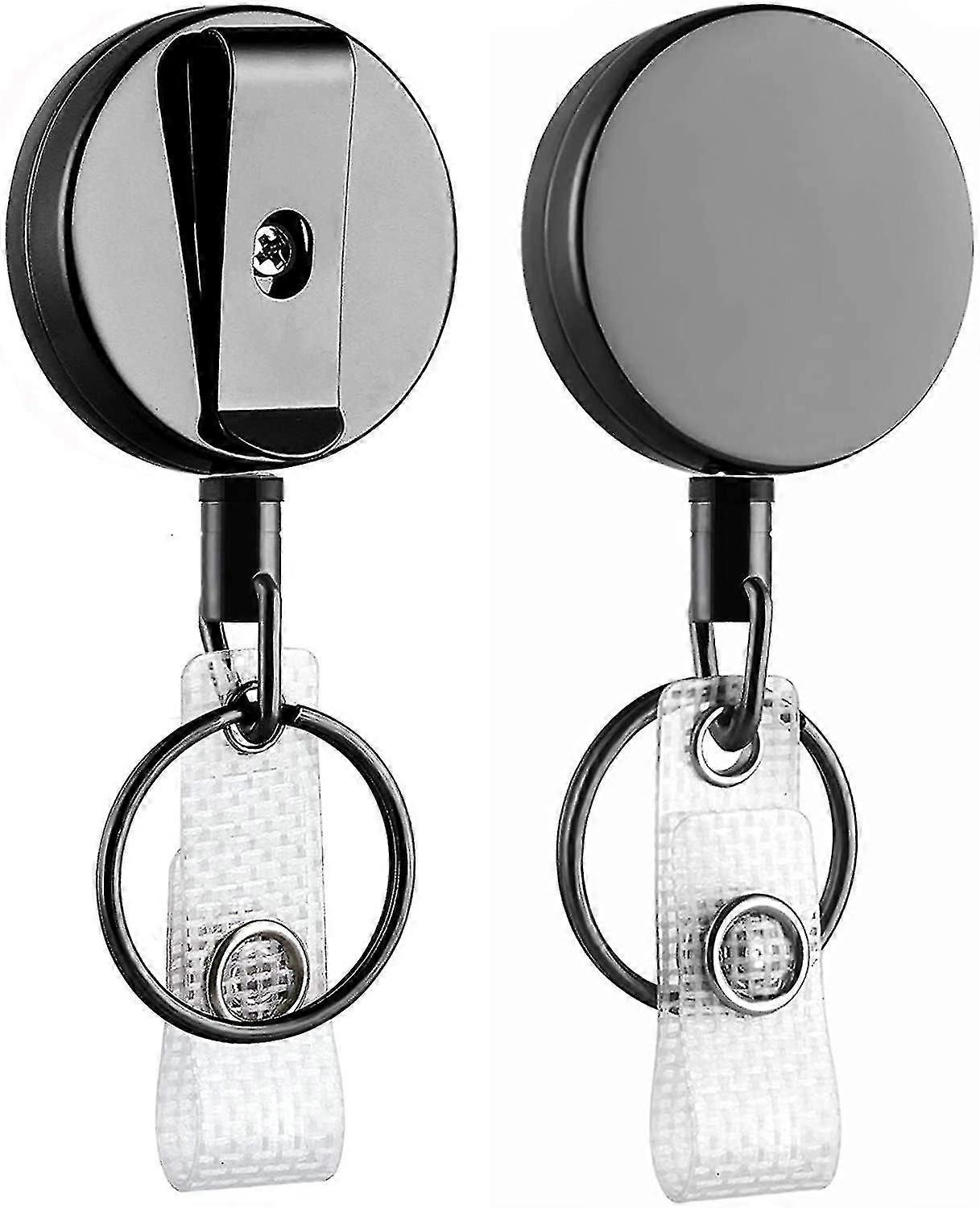 2 Pack Heavy Duty Retractable Badge Holder Reel, Metal Id Badge Holder With Belt Clip Key Ring For Name Card Keychain