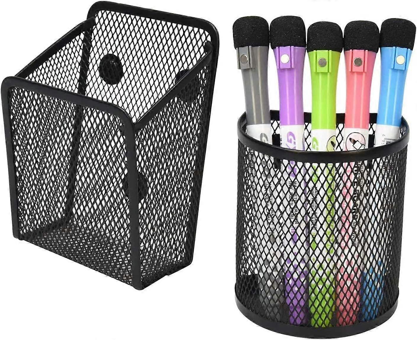 2 Pack Magnetic Mesh Marker Holder with Magnets for Fridge Whiteboard Locker Accessories Office Supplies Organizer (Black)