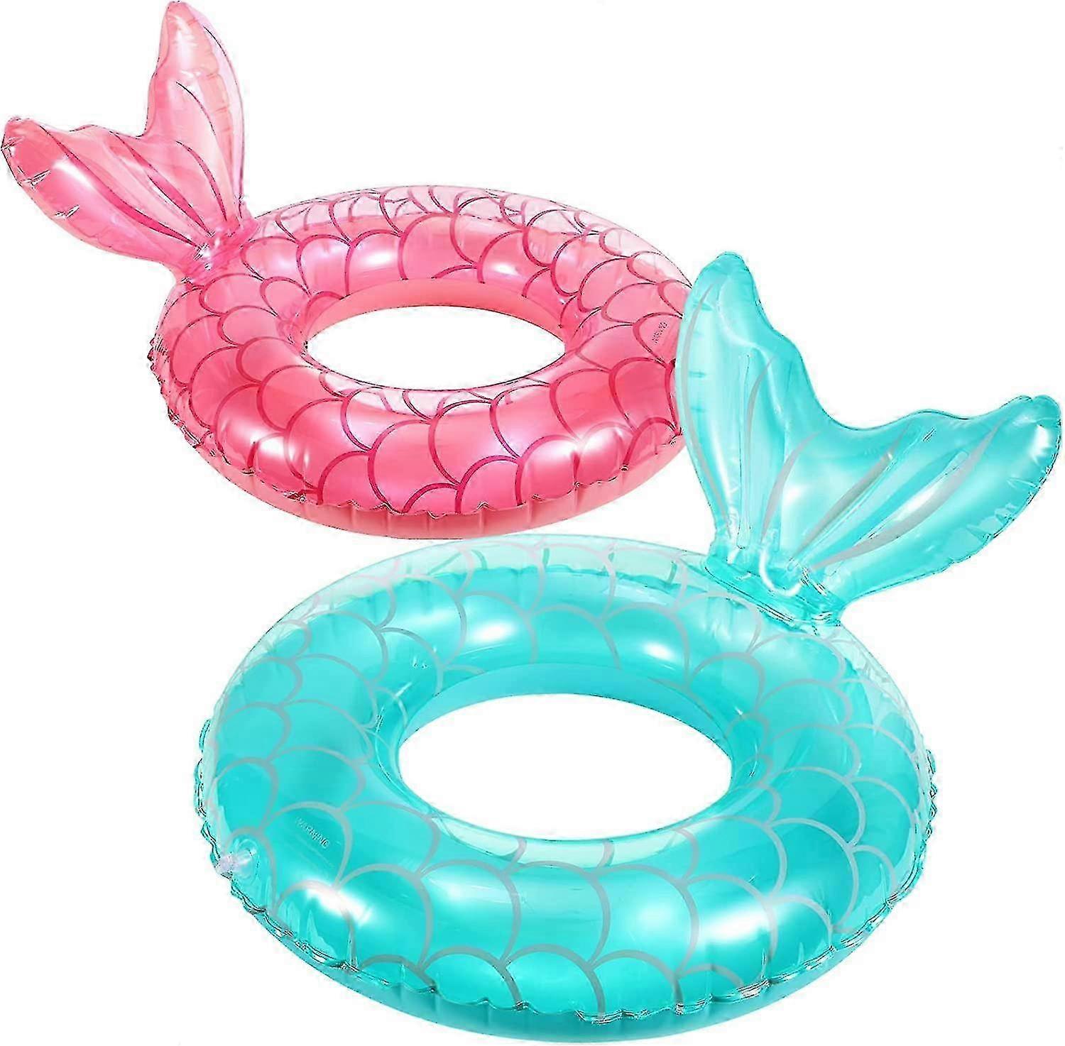 2 Pack Mermaid Tail Swimming Rings, PVC Inflatable Summer Buoys for Kids & Teens - Rose Gold & Blue
