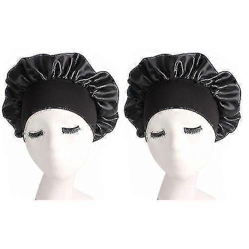2 Pack Women Satin Solid Sleeping Hat Night Sleep Cap Hair Care Bonnet Nightcap