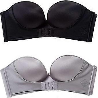 2パック女性ハンドシェイプフロント/バックバックル目に見えないワイヤーフリー滑り止めストラップレスプッシュアップブラジャー