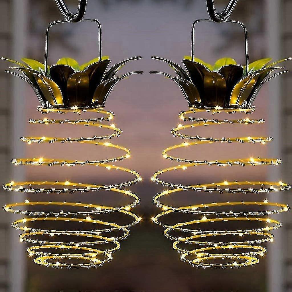 2 Pack Outdoor Solar Pineapple Lights With 24 Bright Led Metal Hanging Solar Lights