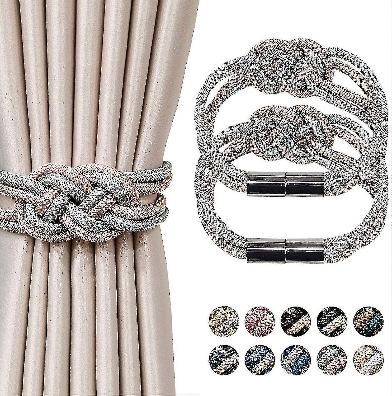 2 Pack Strong Magnetic Curtain Tiebacks Upgrade Nordic Simple Style Drape Tie Backs Double Color Weave Rope Knot Decorative Curtain Holdbacks For Home