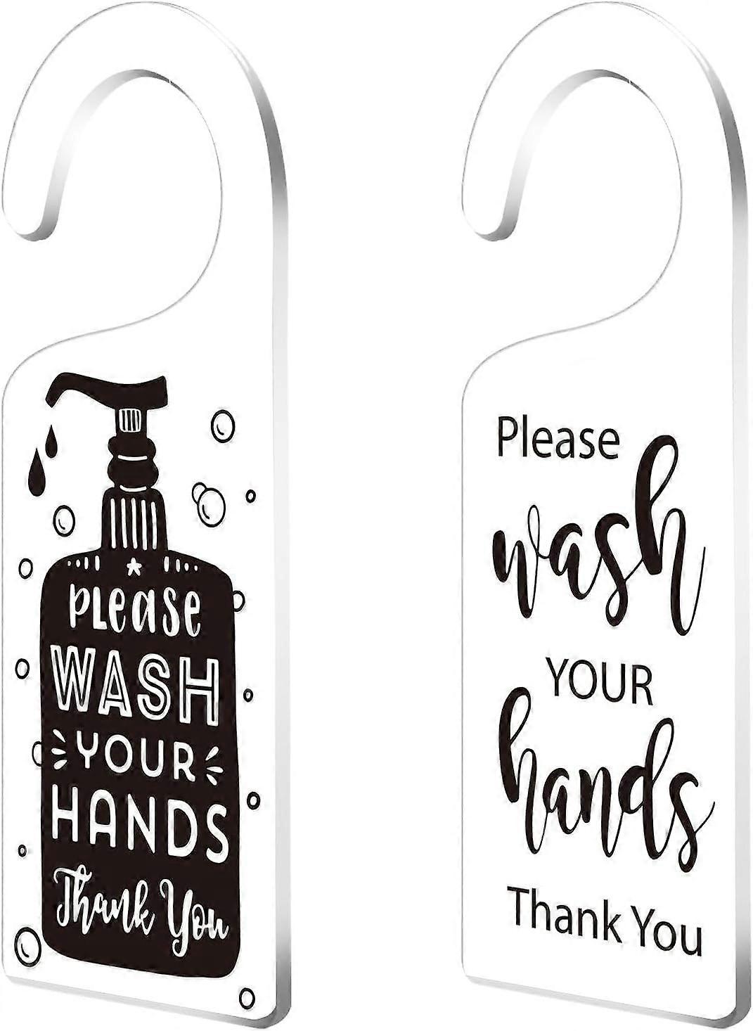 2Pack Please Wash Your Hands Door Hanger Sign Acrylic Notice Door Hanger Sign Acrylic Door Handle Hangings Sign Door Handle Decorations Sign for Kitch