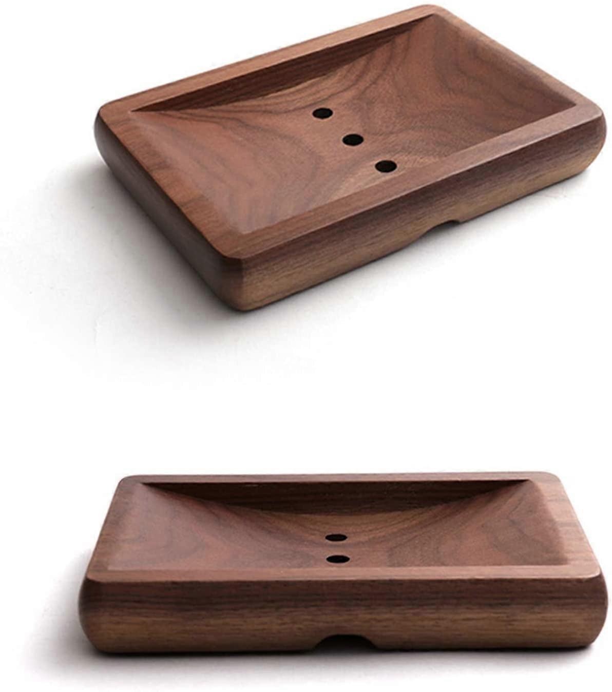 2 Pack Wooden Soap Dishes with Draining Tray, Black Walnut Wood Bar Soap Holder Soap Case Sponges Holder Soap Saver for Shower, Bathroom, Kitchen