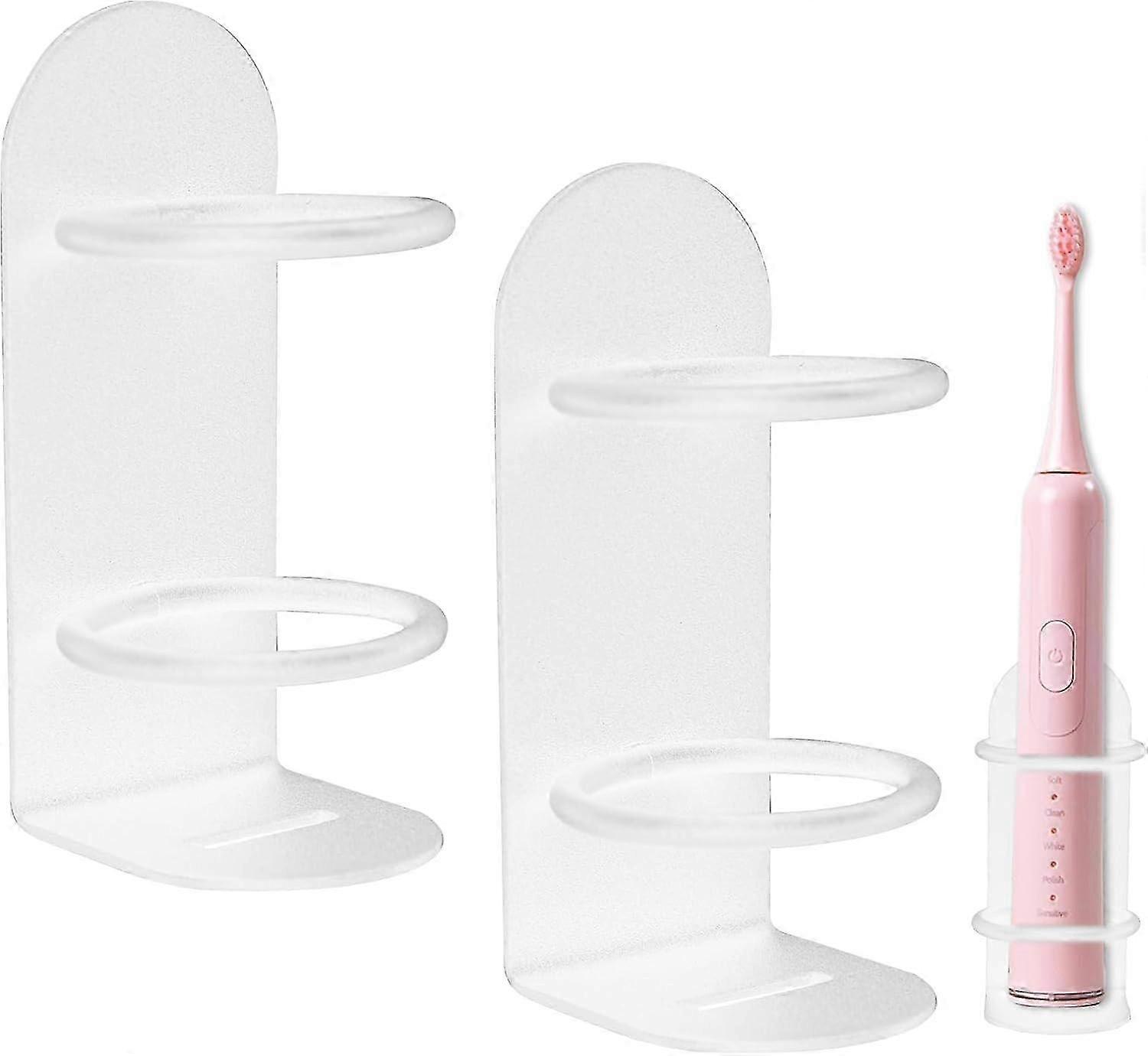 2 Packs Toothbrush Holder, Electric Toothbrush Holder Wall Mounted Metal Tooth Brushing Organizer Holder Stick on the Wall--White