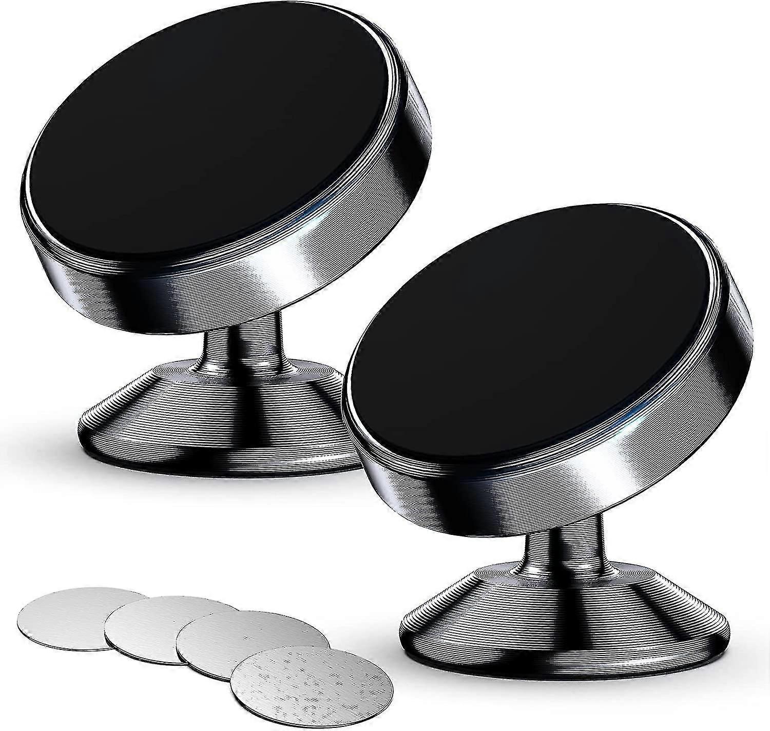 [360 Rotation and Easy Installation]: Magnetic Car Cell Phone Mount is portable accessories and only the size of chewing gum. It will not block any view when driving. Comes with 360-degree adjustable connector ball, adjust the angle of the phone at will.