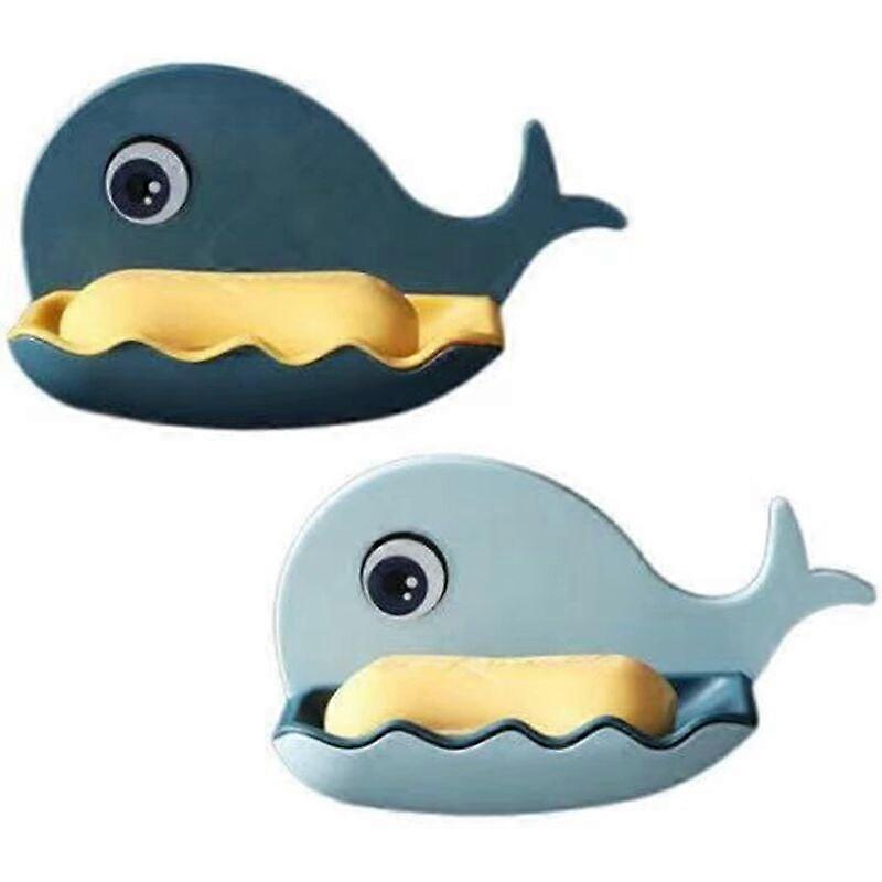 2 Pack No Drilling Rubber Soap Dishes Wall Mounted with Water Drain Holes - Whale Shape Soap Boxes for Bathroom Kitchen Shower Room-Durable Material: Wall-mounted soap dish made of environmentally friendly plastic, lightweight and durable, not easy to fade or deform, for your safety and comfort Space Saving: If there is hardly any space in the shower and bathtub, this soap dish is the ideal solution, it can be easily fixed on a smooth wall and make your things nice and organized. Humanized Design: The bottom of the soap dish is made of rubber without drilling with drainage outlet, keeping water out, keeping your soap clean and dry. Easy to Use: The soap holder is made of adhesive tape. Just peel off the film from the adhesive pad and stick it on the smooth wall surface