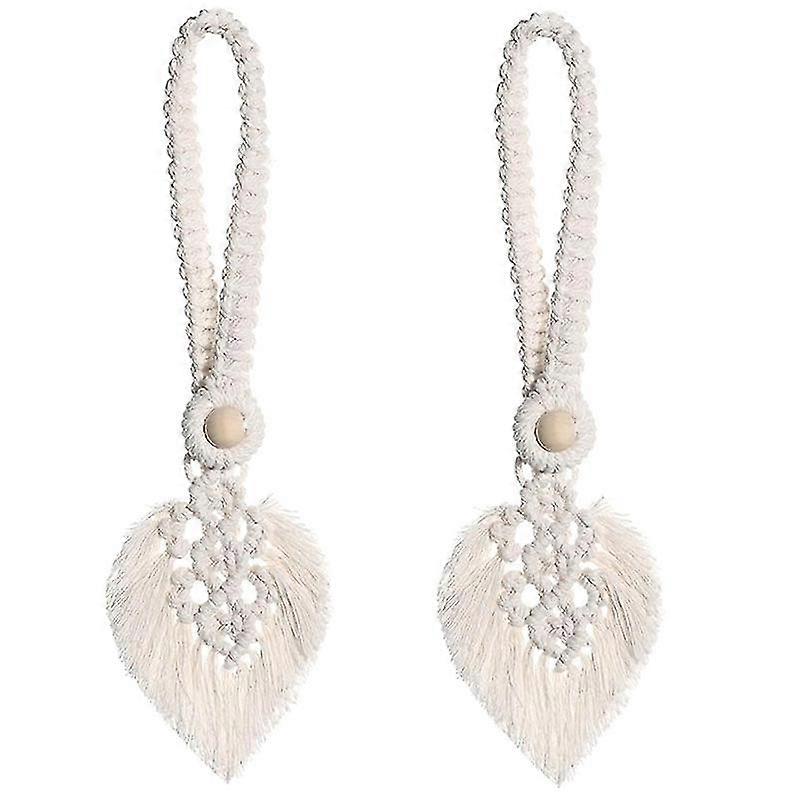 2 Pack Boho Curtain Tiebacks, Curtain Holdbacks With Adjustable Natural Wooden Bead, For Indoor Outdoor Decor, Beige