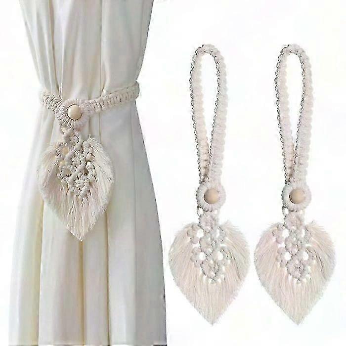 2 Pack Boho Leaf Curtain Tiebacks Beige Home Decor