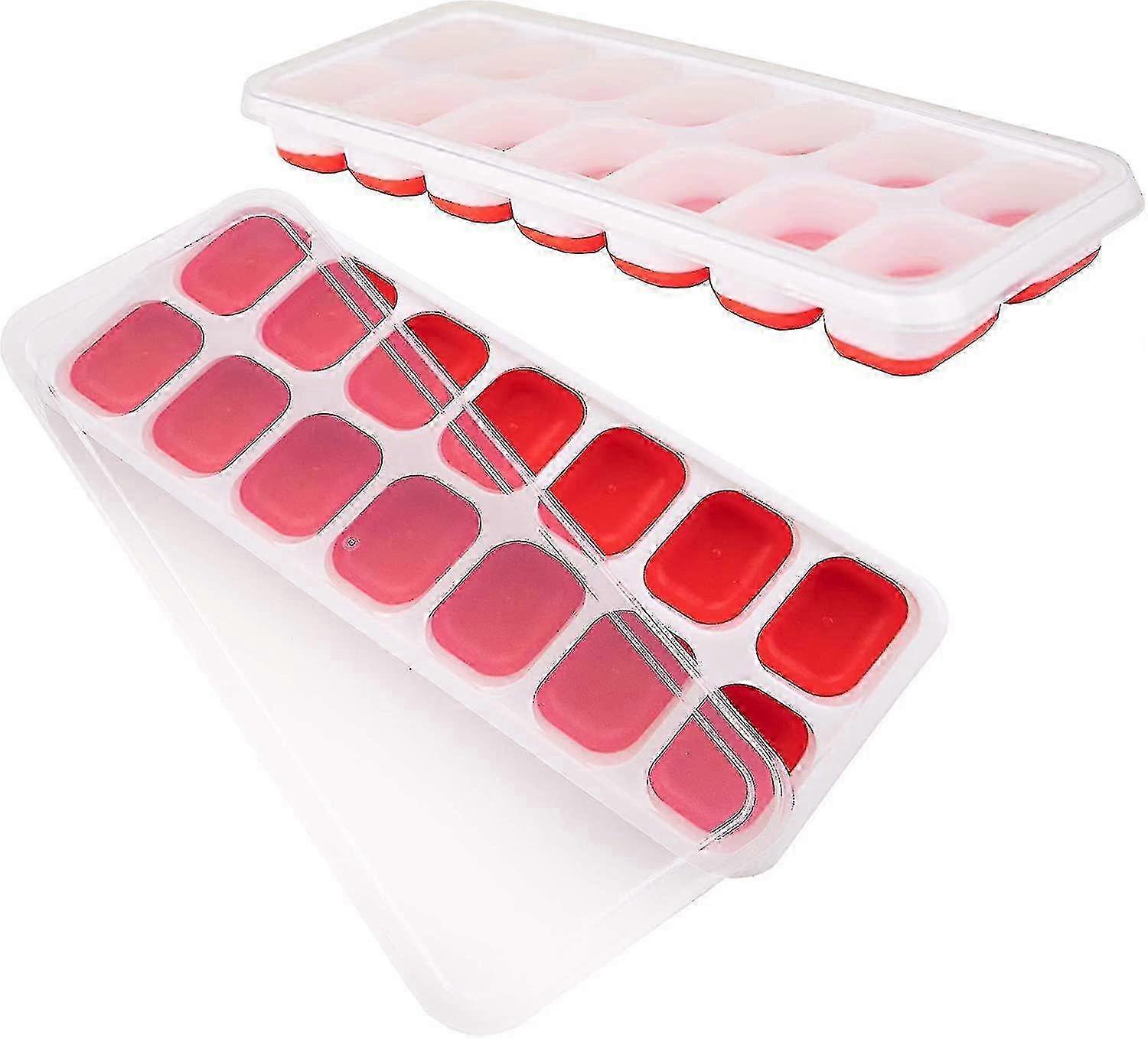 (2-Pack) 14-Cube Silicone Ice Tray with Lid - Easy Release, Stackable, Food Grade