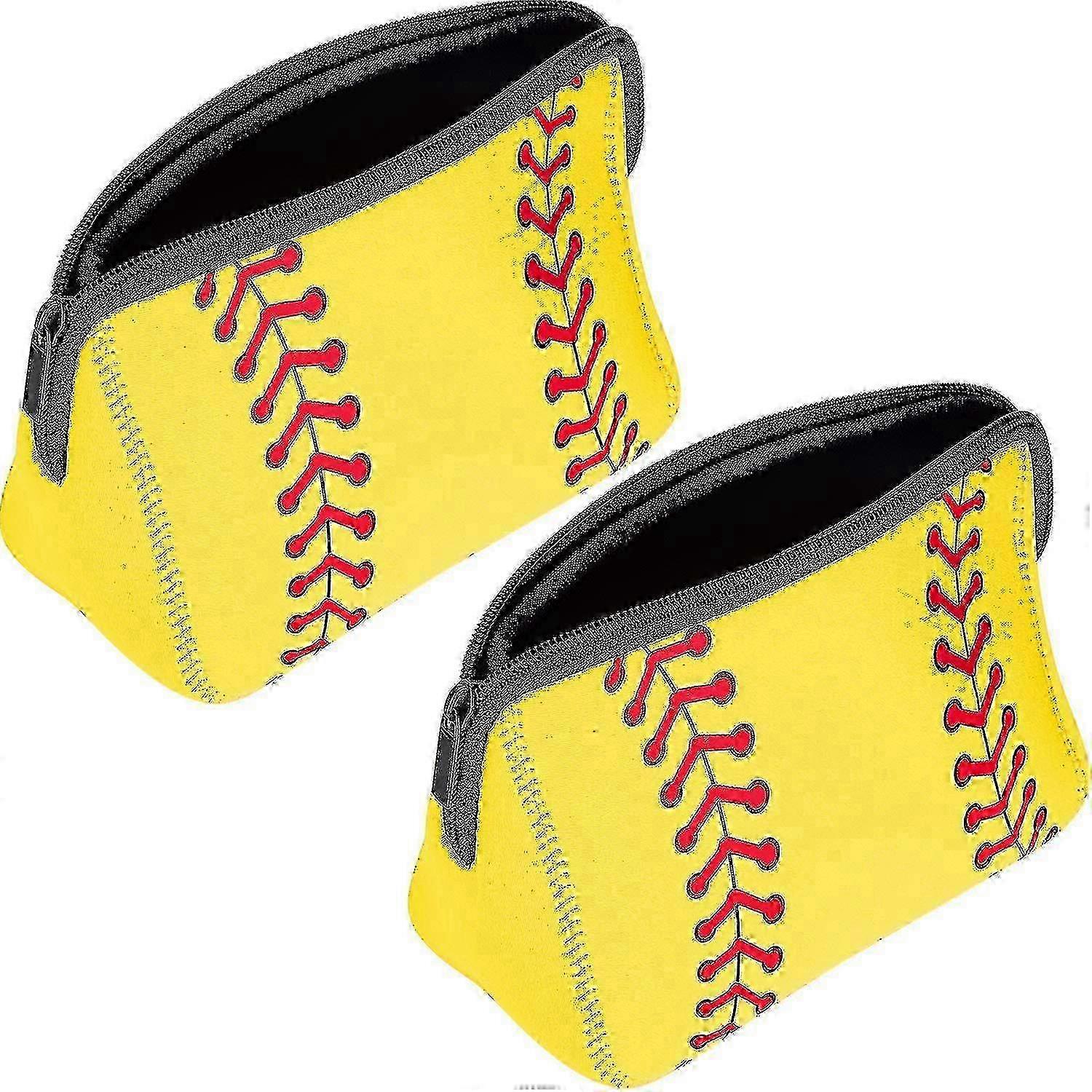 2 Pack Baseball Printing Makeup Bag Softball Travel Cosmetic Bag Pouch Waterproof Neoprene Pouch With Zipper For Women Girls Travel Teamates (yel