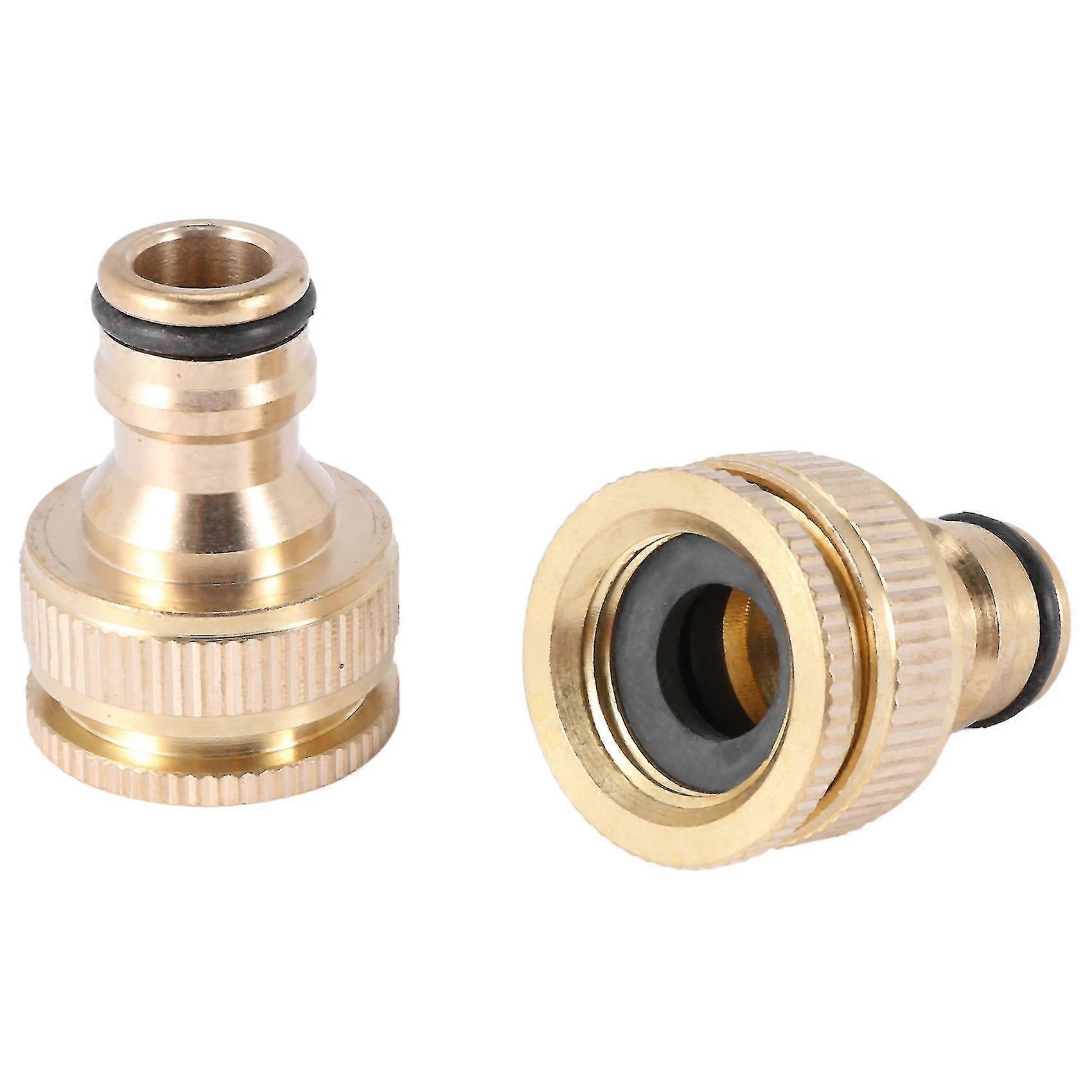 BRASS TAP CONNECTOR: Brass Garden Hose Tap connector has two Female Threaded tap connectors. Each connector can fit to 3/4 Inch & 1/2 Inch tap.2 PART CONNECTOR: The tap connector comes with two parts. When both parts are intact, the connector fits to a 1/2 Inch tap. When the top part is unscrewed, the connector fits into a 3/4 Inch tap.EASY TO USE: The Brass threaded connector enables quick, easy connection and disconnection to the water supply. Perfect for using with Garden Hose PipesMADE OF BRASS: The connectors are made of Brass and are resistant to corrosion and rust. Designed to be robust and durable, these connectors fit in most standard UK outdoor taps.1/2 inch, combined by a 3/4 connecter with a 1/2 crew cap/nut, can be transferred to a 3/4 adapter.3/4 inch, diameter bigger than the 1/2 inch.Solid brass material makes it work longer than plastic one. Easy to install and take off. It's a product designed for threaded faucet, used in a glazed faucet/tap may fall off caused by high water pressure, if the water pressure is low it will work.colour: yellowMaterial: brassPackage Contents:2 * tap connectorOnly the above package content, other products are not included.Note: Light and different displays may cause the color of the item in the picture a little different from the real thing. The measurement allowed error is +/- 1-3cm.