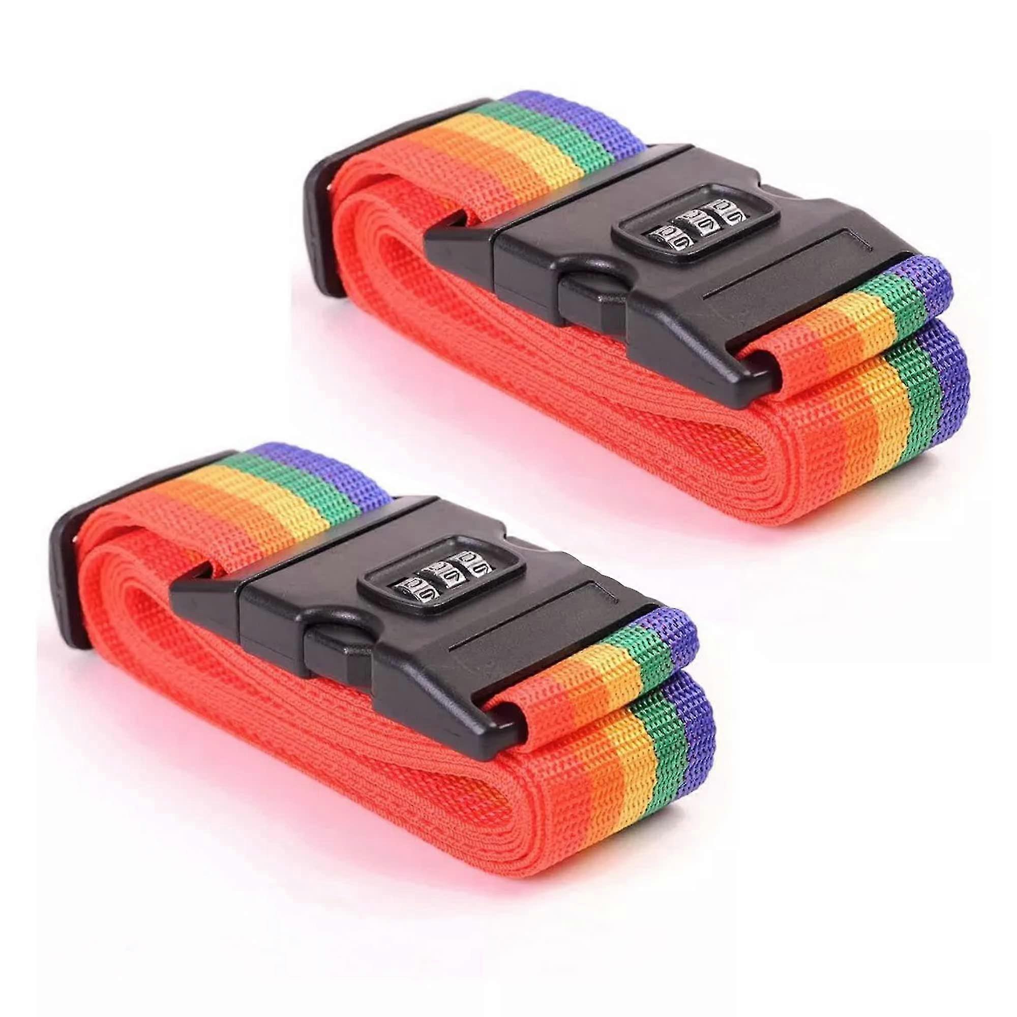2 Pack - Heavy Duty Non-Slip Luggage Straps for Suitcases Straps Adjustable Straps Rainbow Colors (Rainbow Straps with Locks)