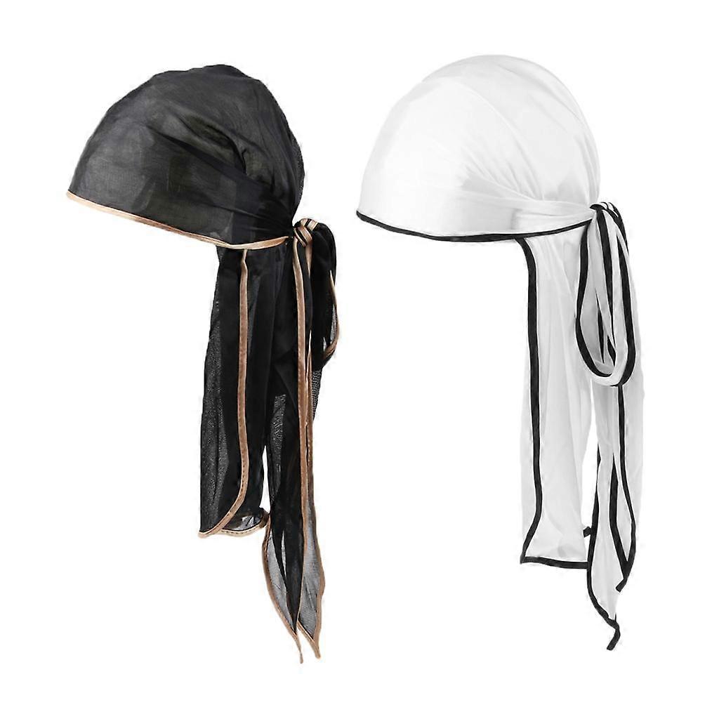 2Pack Unisex Satin Bandana Hat Rag Cancer Chemo Headwrap Long Tail Durag
