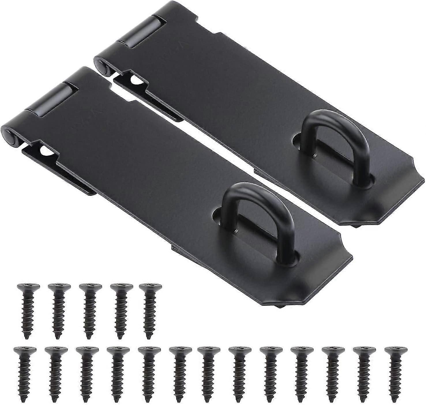 2 Pack 127mm Stainless Steel Padlock Hasp, Heavy Duty Hasp And Clip With Screws, Door Catch, Gate Latch, Shed, Padlock Clip, Black