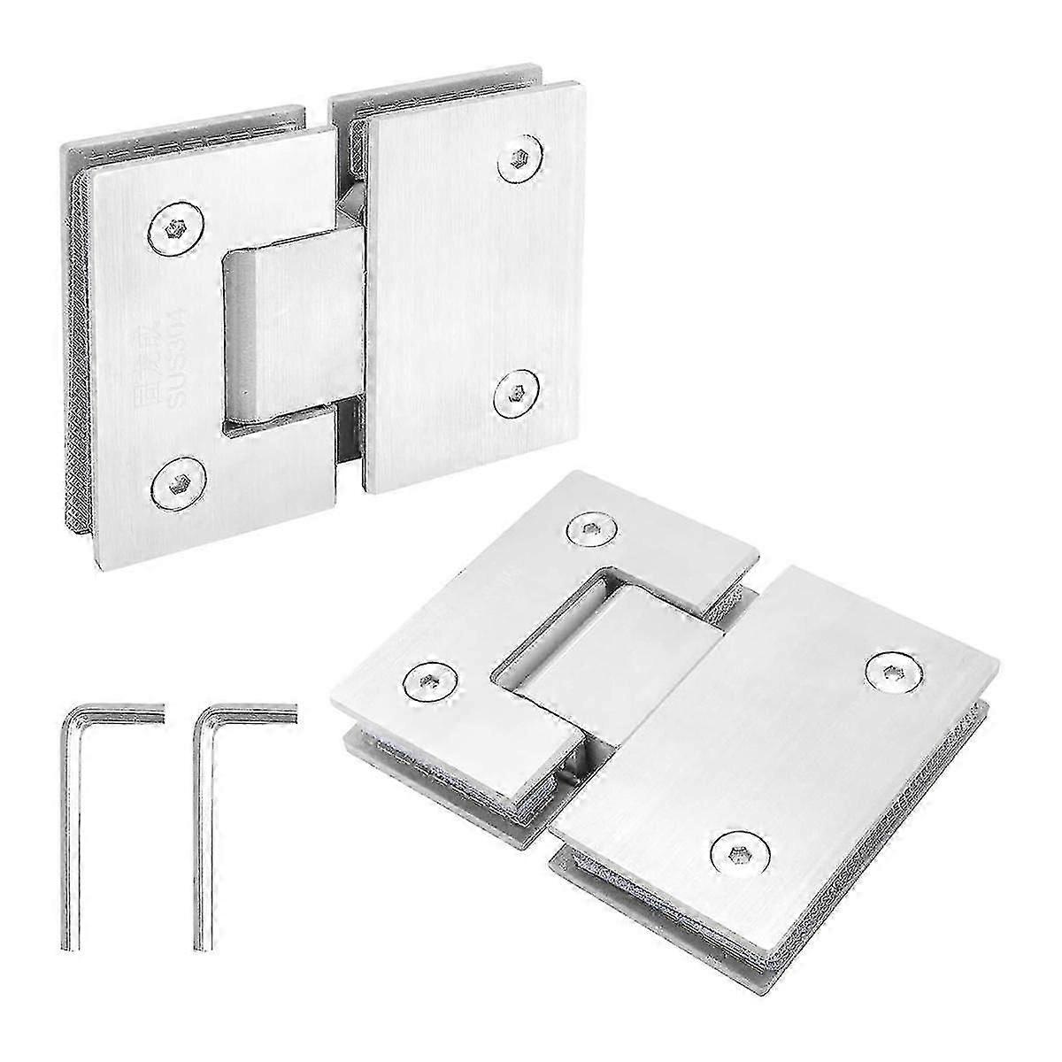 2 Pack 180 Degree Frameless Glass Shower Door Hinges, Brushed Nickel Shower Door Hinges Heavy Duty