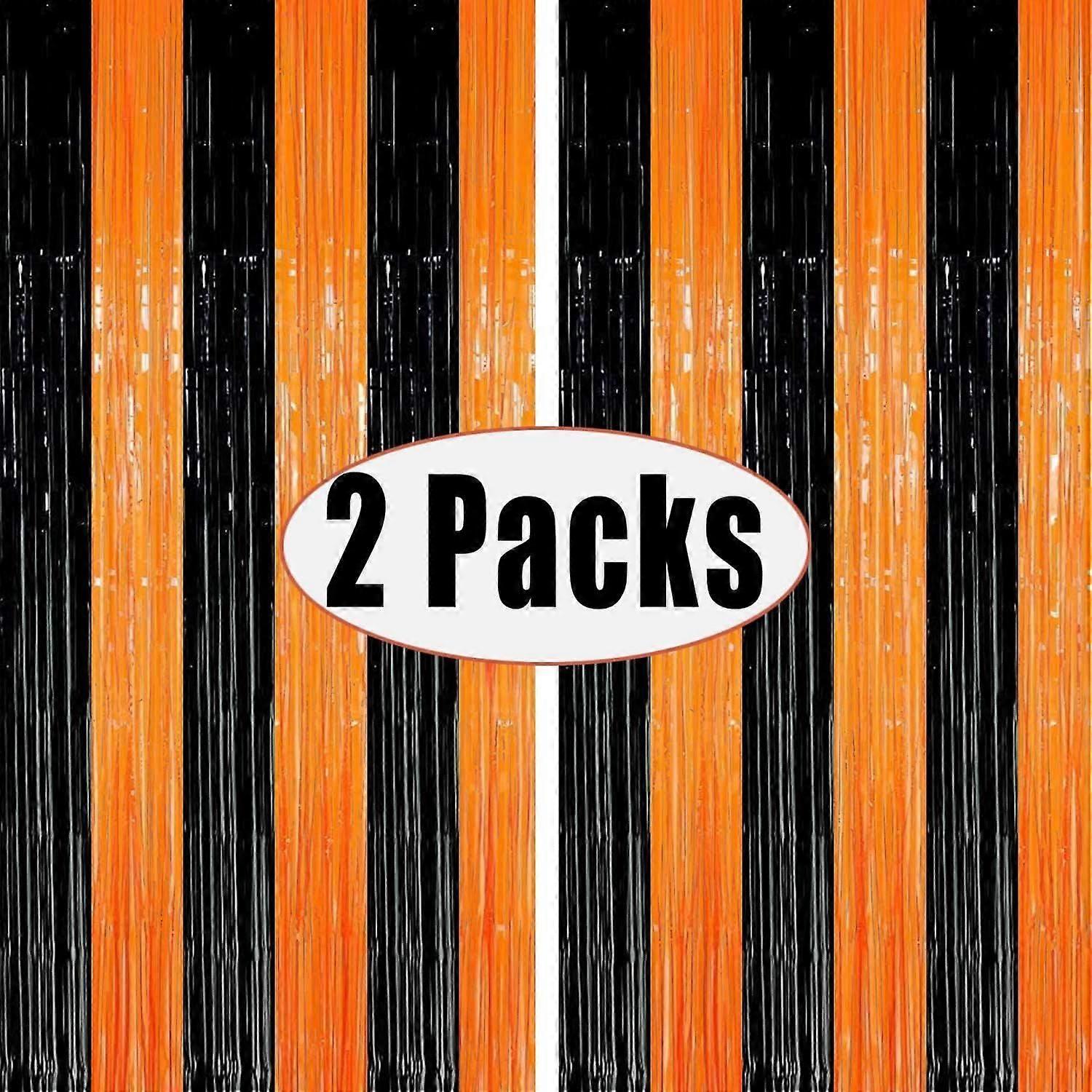 2 Packs 3.3ft x 6.6ft Orange Black Metallic Tinsel Foil Fringe Curtains Photo Booth Props for Halloween Birthday Bridal