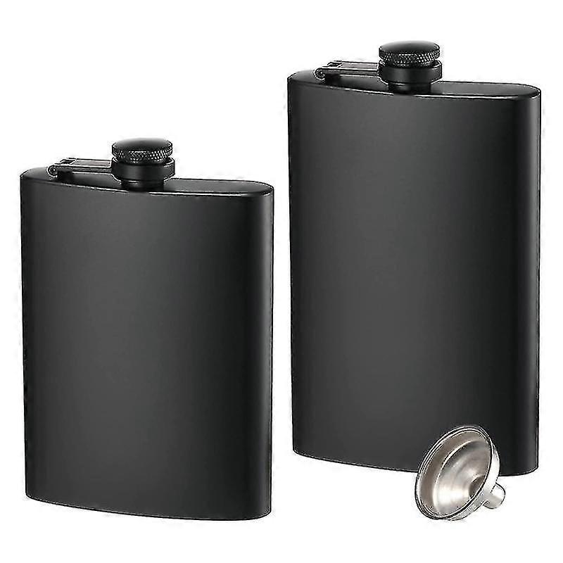 2 Pack 8oz Stainless Steel Hip Flasks - Leakproof, Thin Design with Funnel for Men & Women (Black)