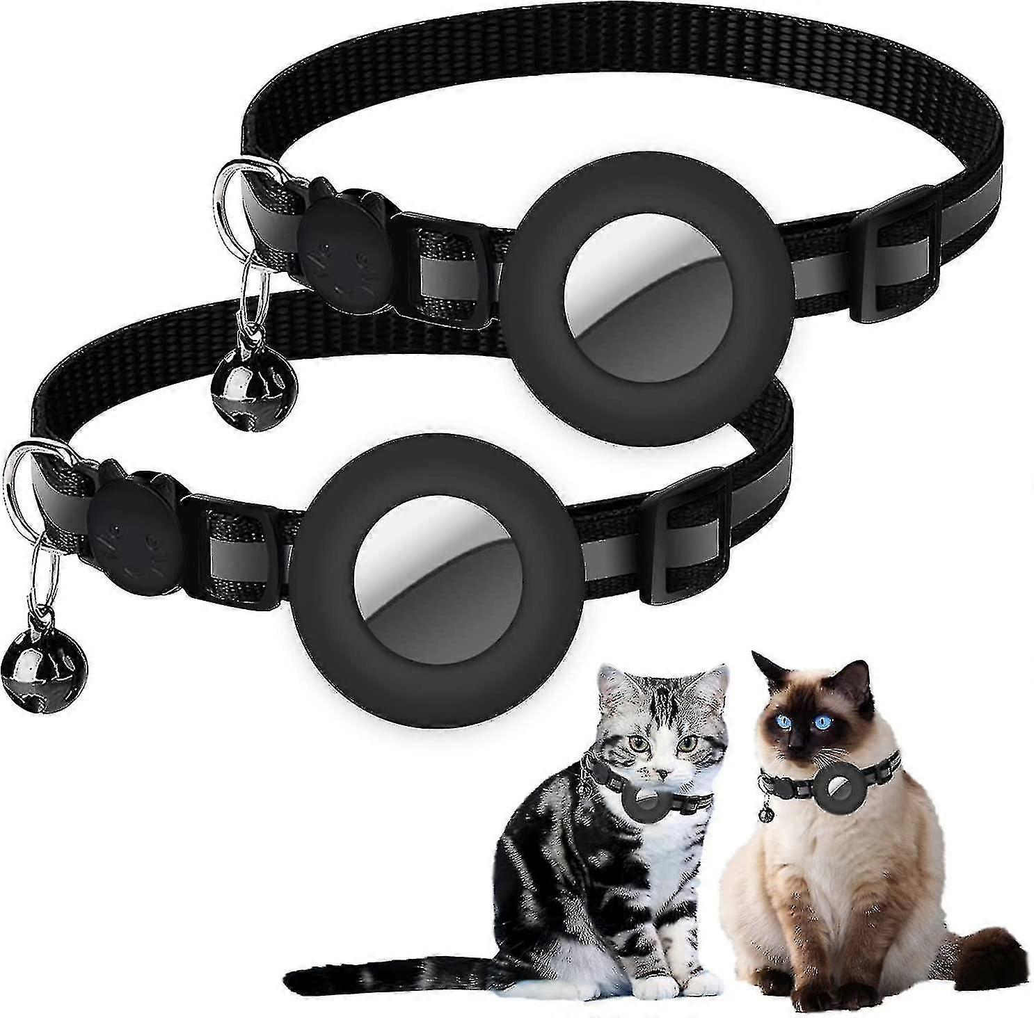 2pack Airtag Cat Collars With Bell And Safely Buckle In 3/8" Width, Reflective Dog Collar With Silicone Waterproof Air Tag Holder Case Compatible With