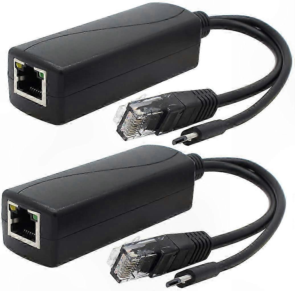 2-Pack PoE Splitter Adapter, 48V to 5V Micro USB Ethernet, Compatible with Raspberry Pi, IP Cameras, and Other Devices