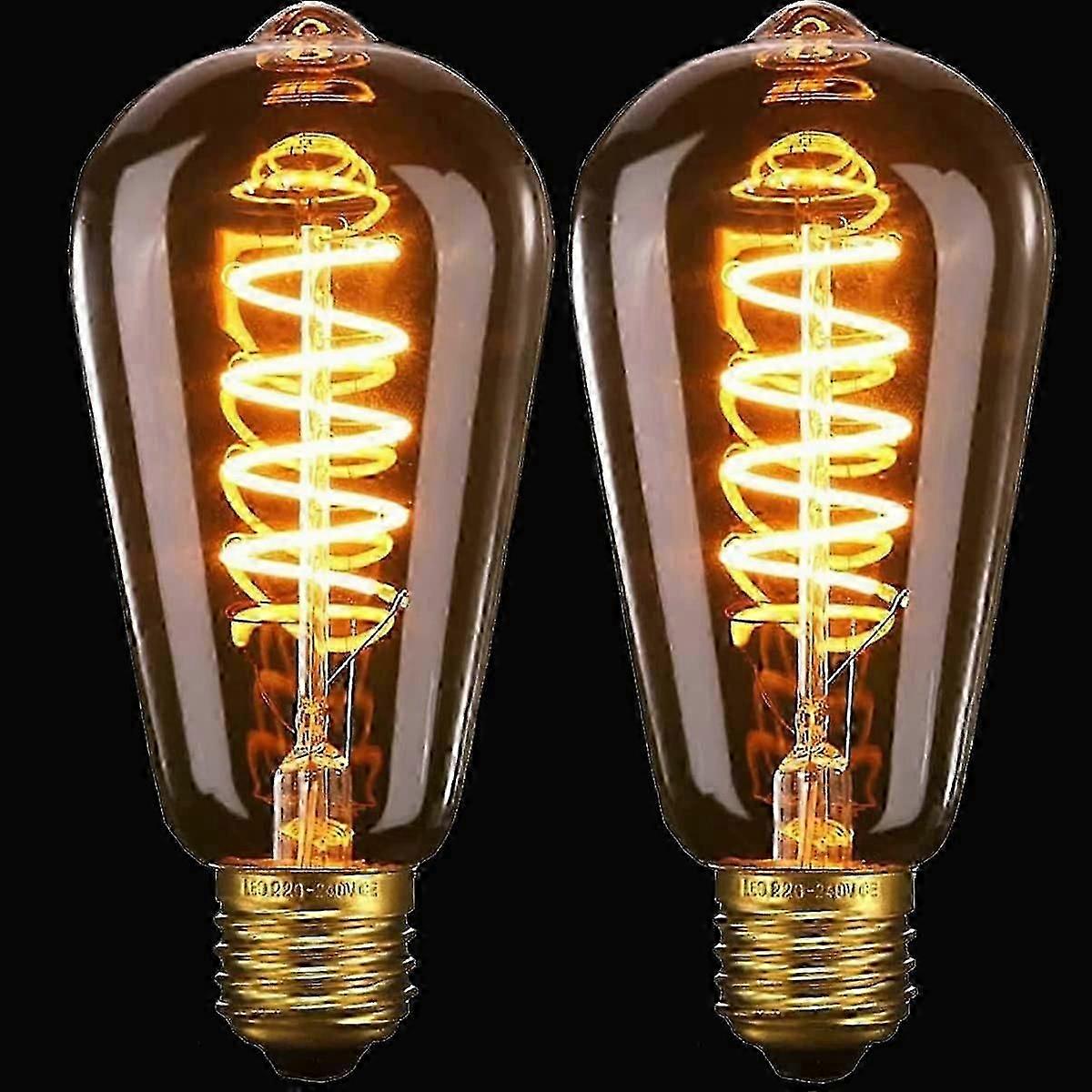 2 Pack ST64 Vintage Edison Light Bulb-4W 40W Dimmable Spiral Flexible LED-Filament Bulbs-No Flicker Retro E27 Screw Bulb