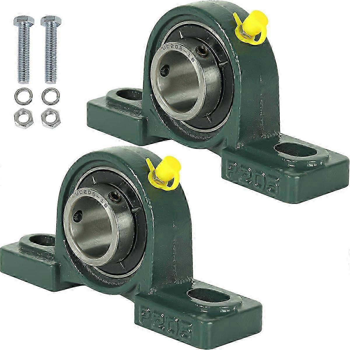 2Pack UCP205-16 Mounted Pillow Block Ball Bearing - Bearing Steel 1-Inch Bore with Solid Case