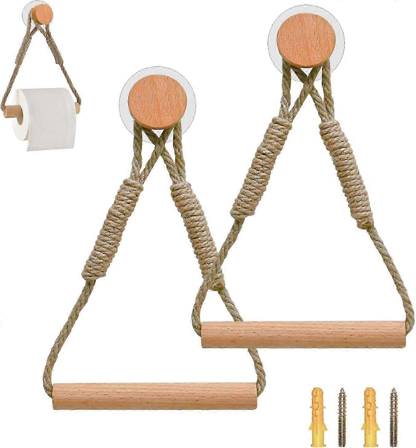 Pack of 2 vintage toilet paper holder - rustic style wood rope towel ring for kitchen and bathroom