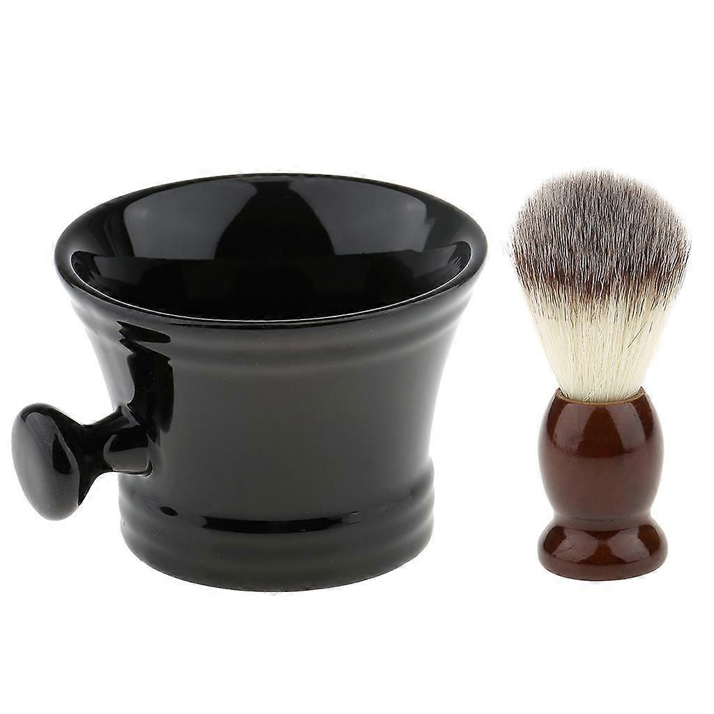 Set of 2 Pieces Plastic Shaving Brush with Ceramic Mug Cup Bowl Kit for Men