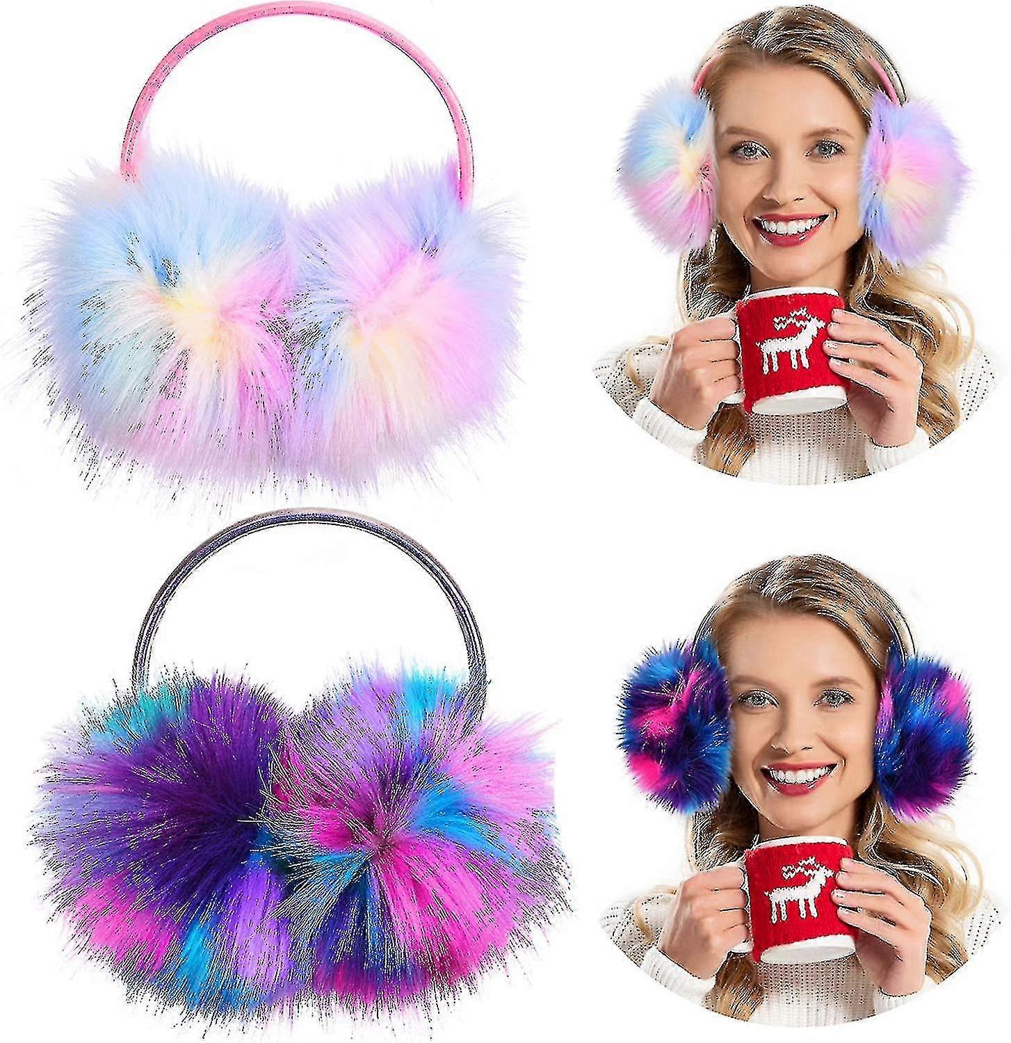 2 Pieces Ear Muff Winter Warm Fluffy Earmuffs Faux Fur Ear Muff Dazzle Color Gift-