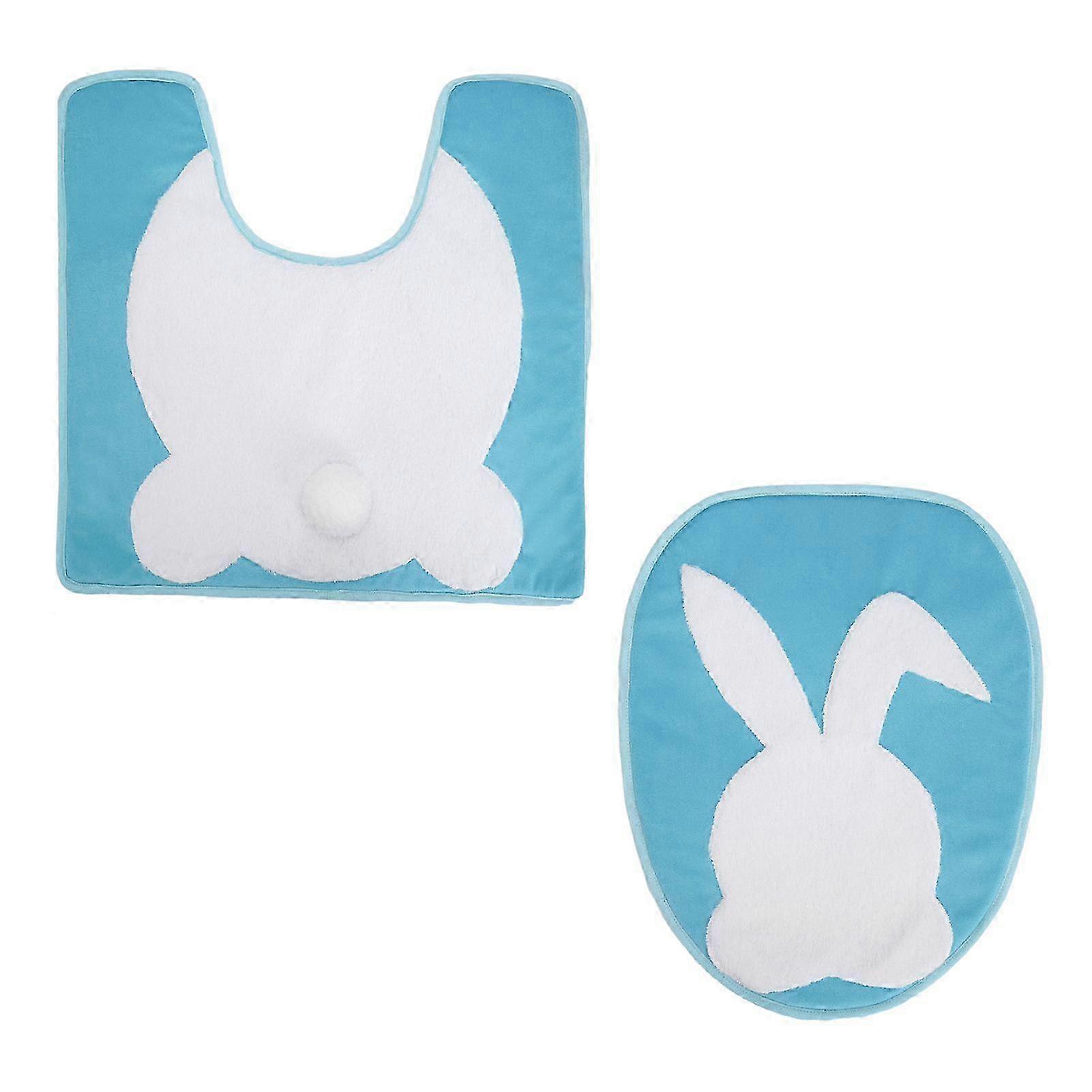 2Pcs Easter Bunny Bathroom Mat Set, Quick Dry Non-Slip Toilet Rug, Washable Easter Decor - Blue