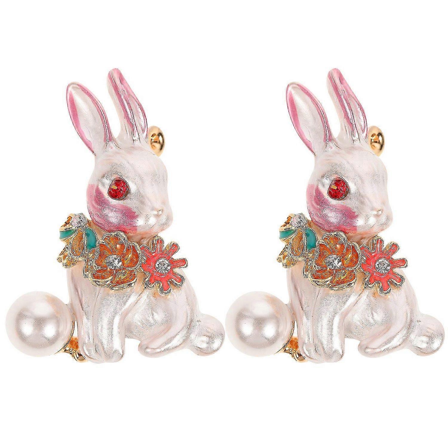 2pcs Easter Brooch Bunny Pearl Design Corsage Decorative Brooch Dress Accessory