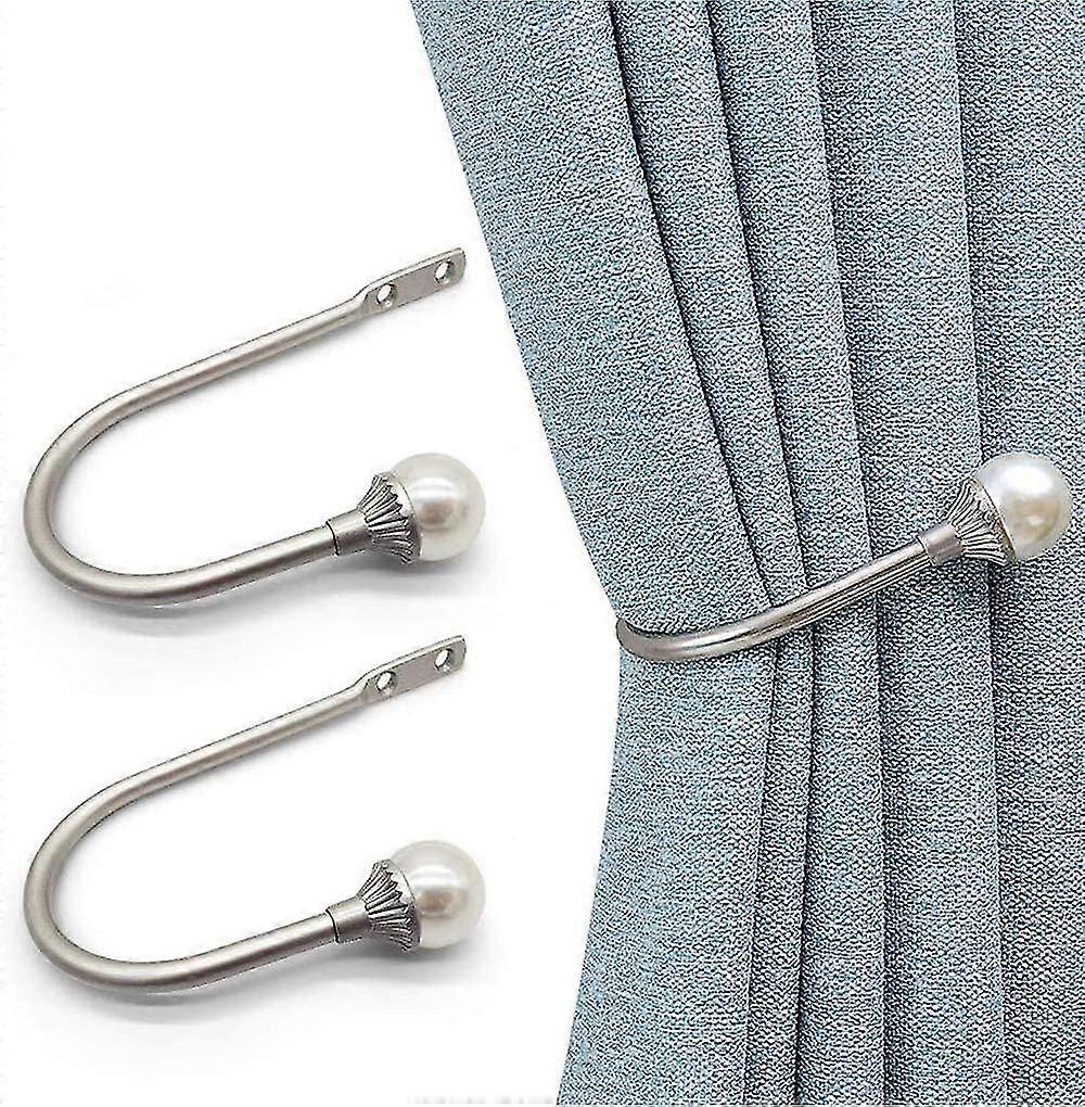 2 Piece Curtain Tieback, Heavy Duty Bead Ties, U Style Metal Curtain Hook Holder, Silver Bedroom Decor