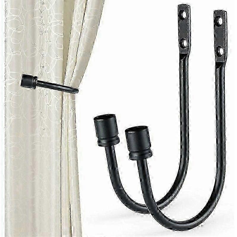 2 Pieces Curtain Holdback, Metal U-Shaped Hook Wall Mounted Tieback Hook Drapery Accessories Decorative Curtain Drapery Holdback (Black)